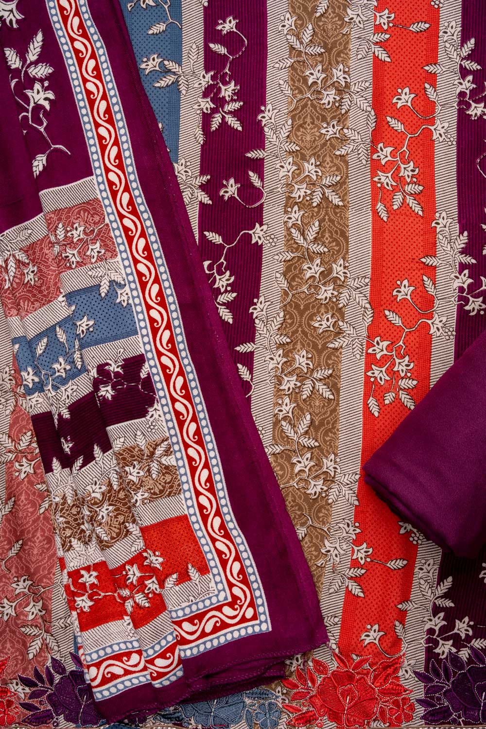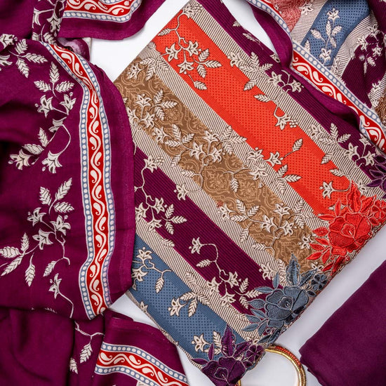 Panna Garnet Pashmina Unstitched Salwar Suit With Pashmina Dupatta