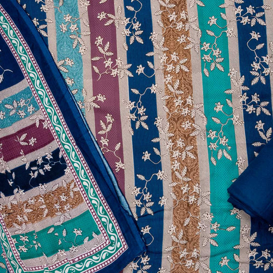Navy Blue Pashmina Unstitched Salwar Suit With Pashmina Dupatta