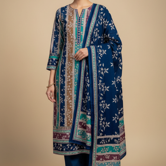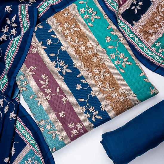 Navy Blue Pashmina Unstitched Salwar Suit With Pashmina Dupatta – The Panna Shop