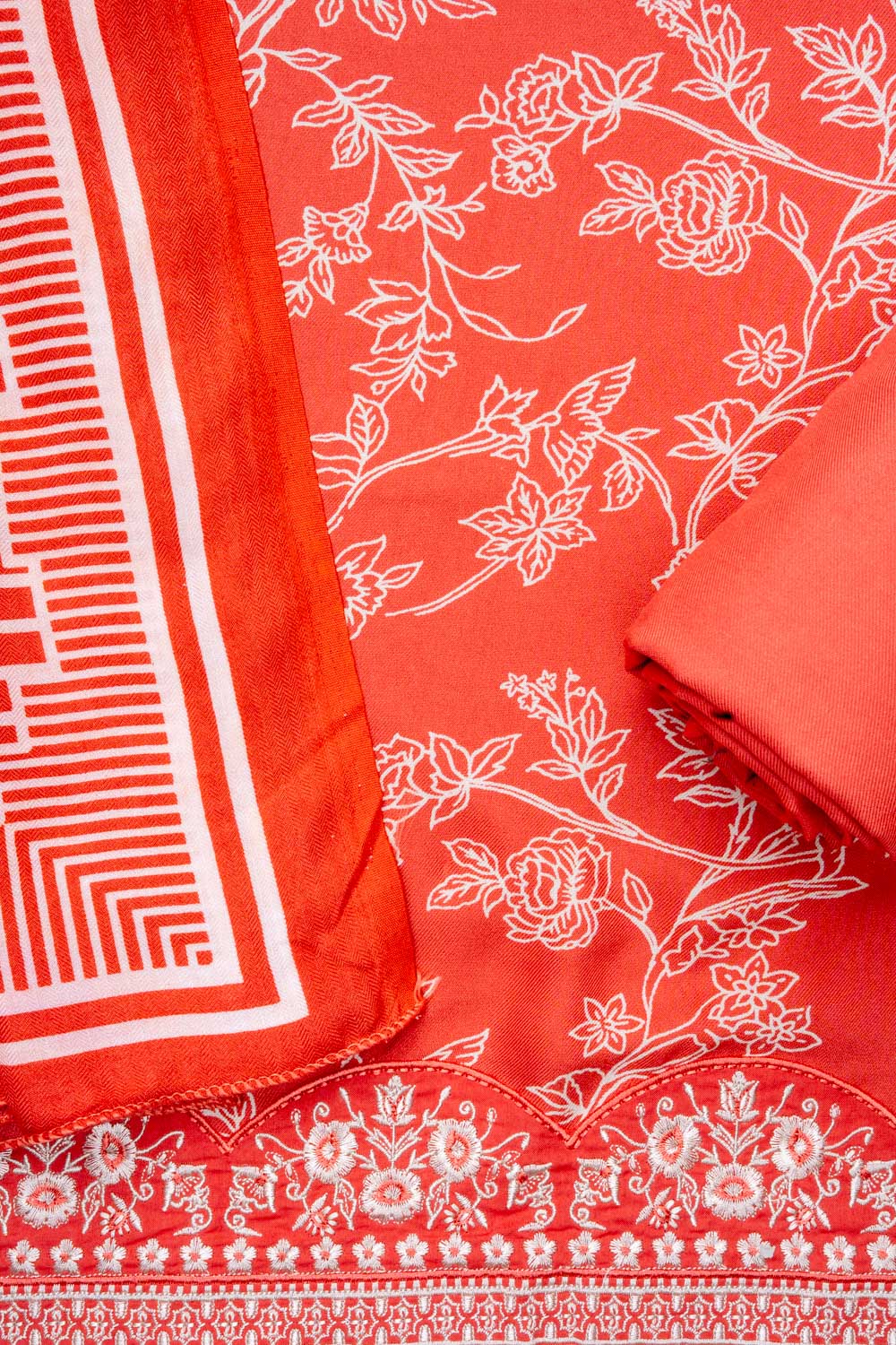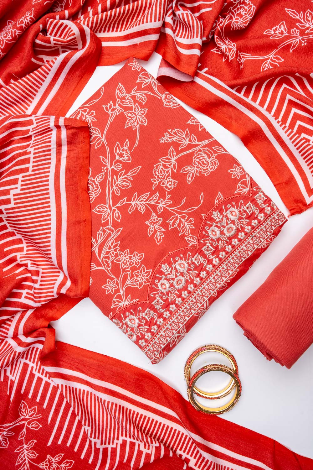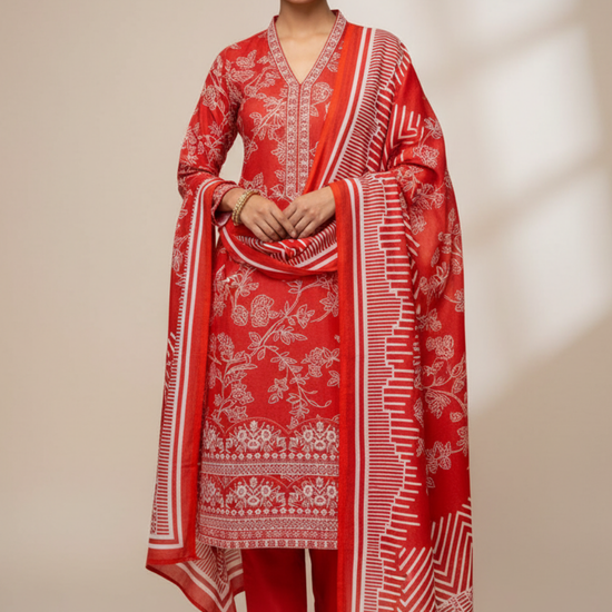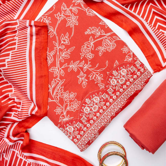 Panna Coral Pashmina Unstitched Salwar Suit With Pashmina Dupatta