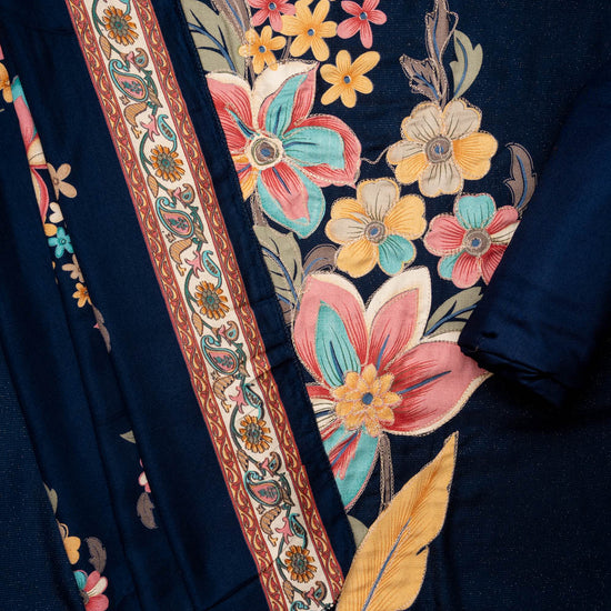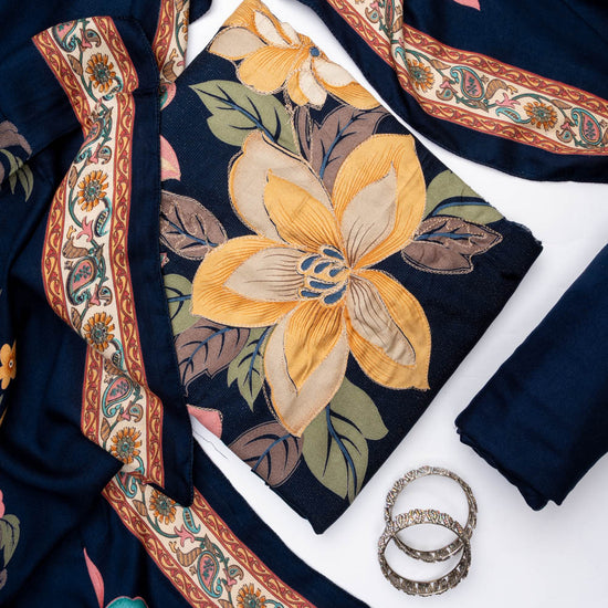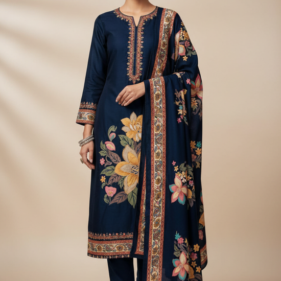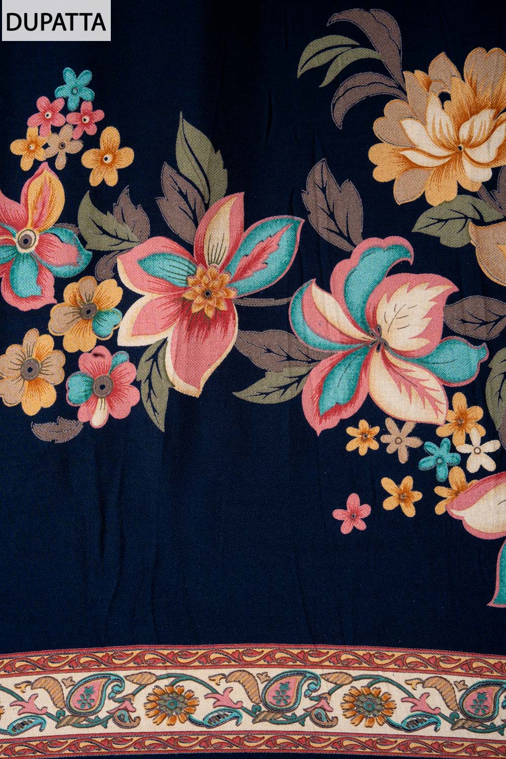 Panna Navy Blue Pashmina Unstitched Salwar Suit With Pashmina Dupatta