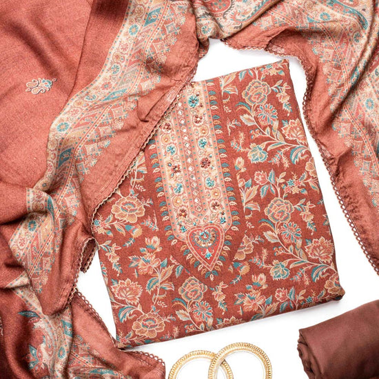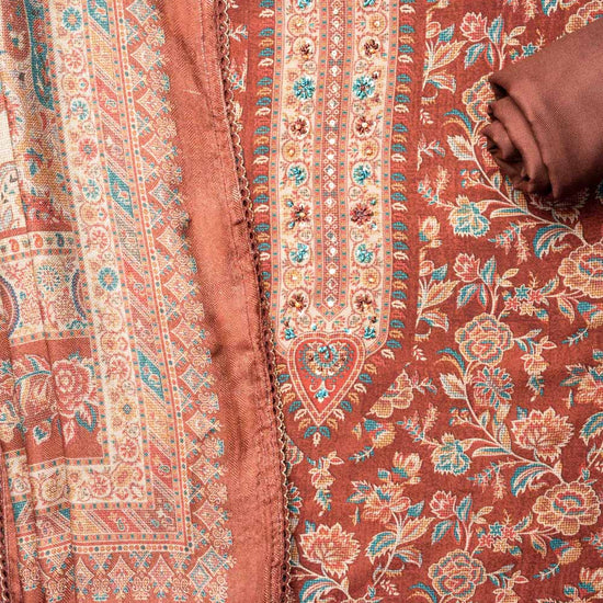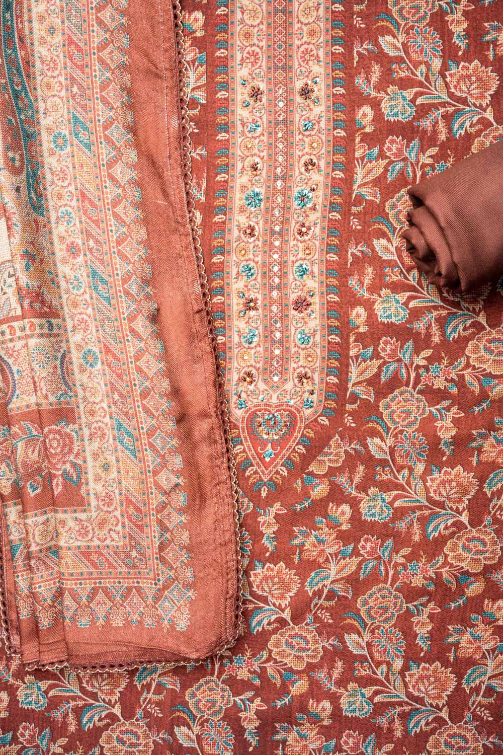 Panna Maroon Pashmina Unstitched Salwar Suit With Pashmina Dupatta