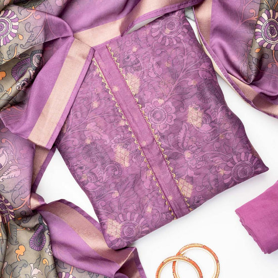 Panna Mauve Cotton Unstitched Salwar Suit With Cotton Dupatta