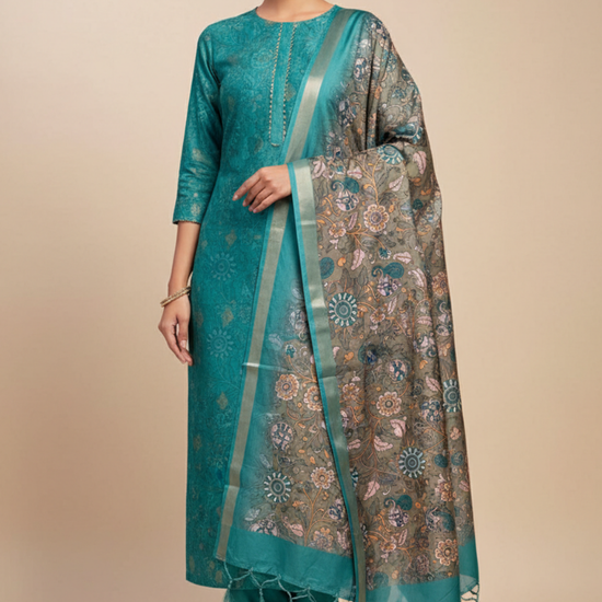 Panna Rama Cotton Unstiched Salwar Suit With Cotton Dupatta
