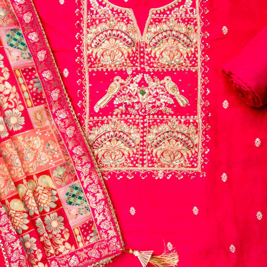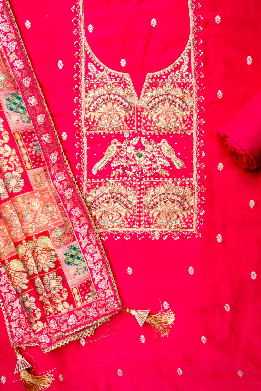 Panna Rani Cotton Unstitched Salwar Suit With Dola Silk Dupatta