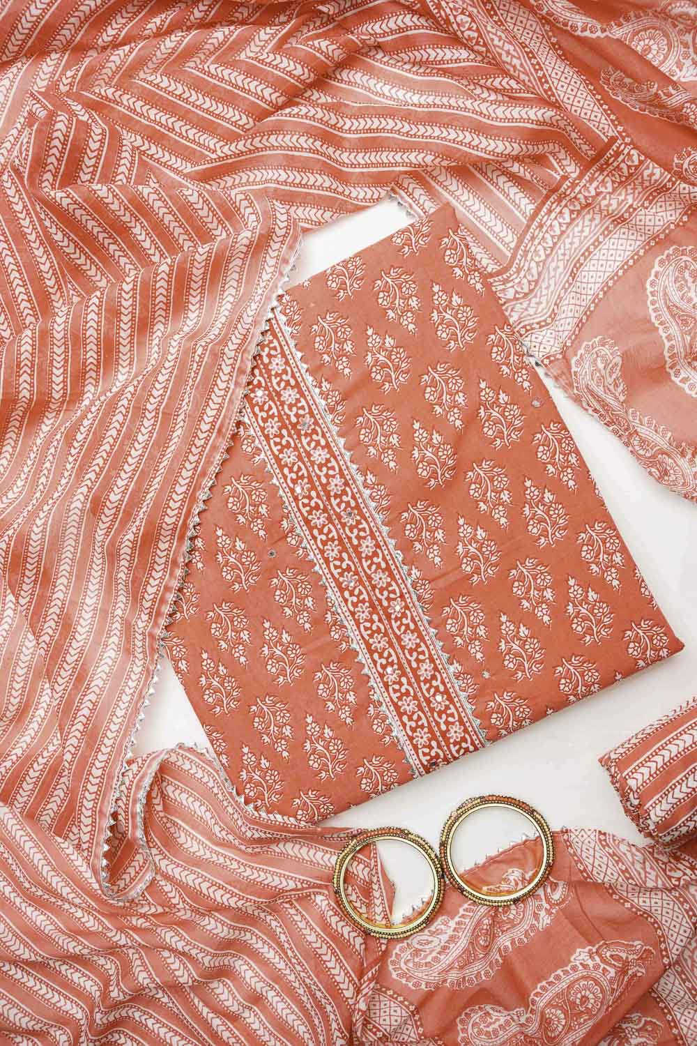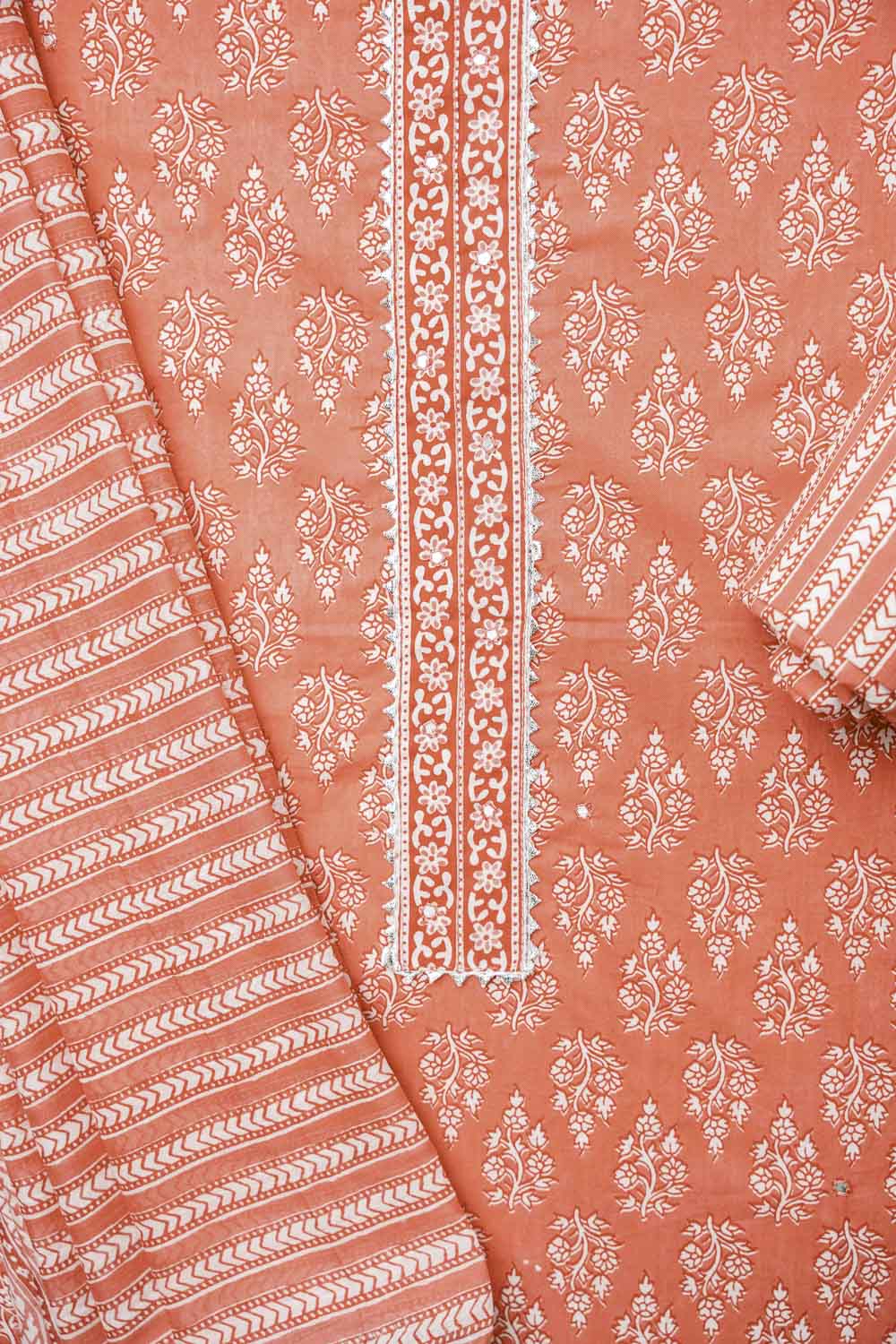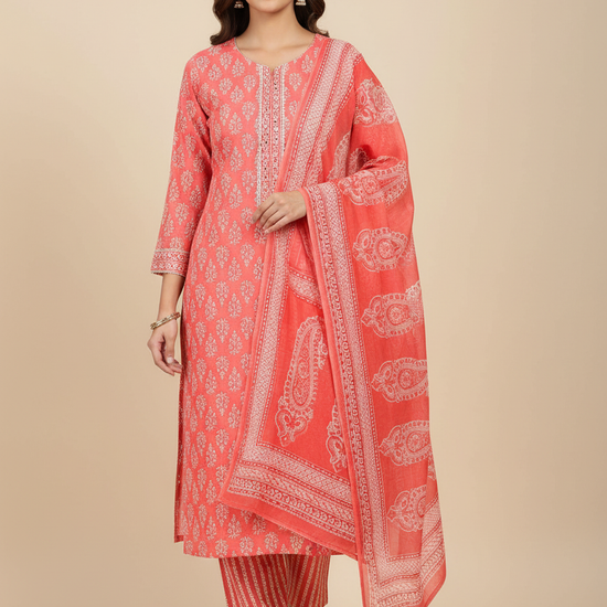 Panna Coral Cotton Unstitched Salwar Suit With Cotton Dupatta