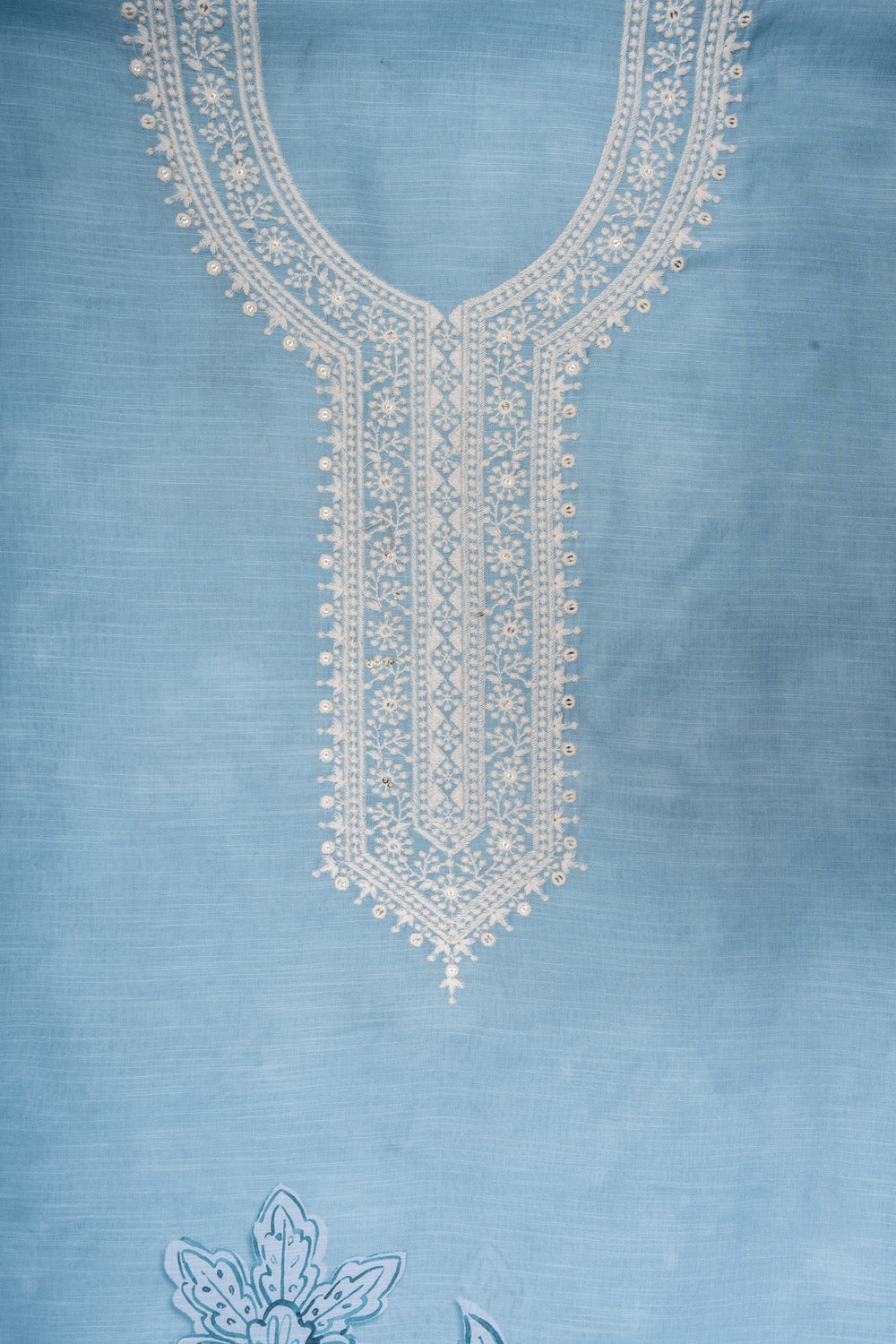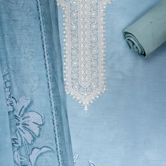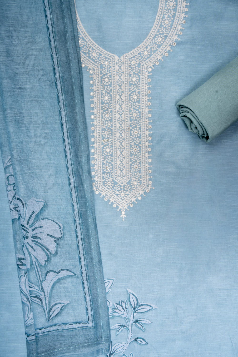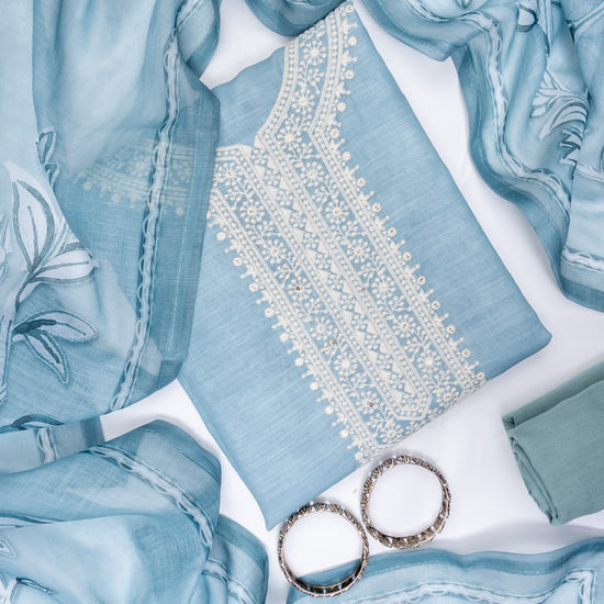 Panna Mint Green Cotton Unstitched Salwar Suit With Cotton Dupatta