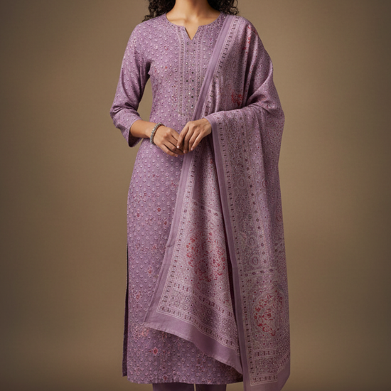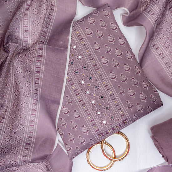 Panna Mauve Cotton Unstitched Salwar Suit With Cotton Dupatta