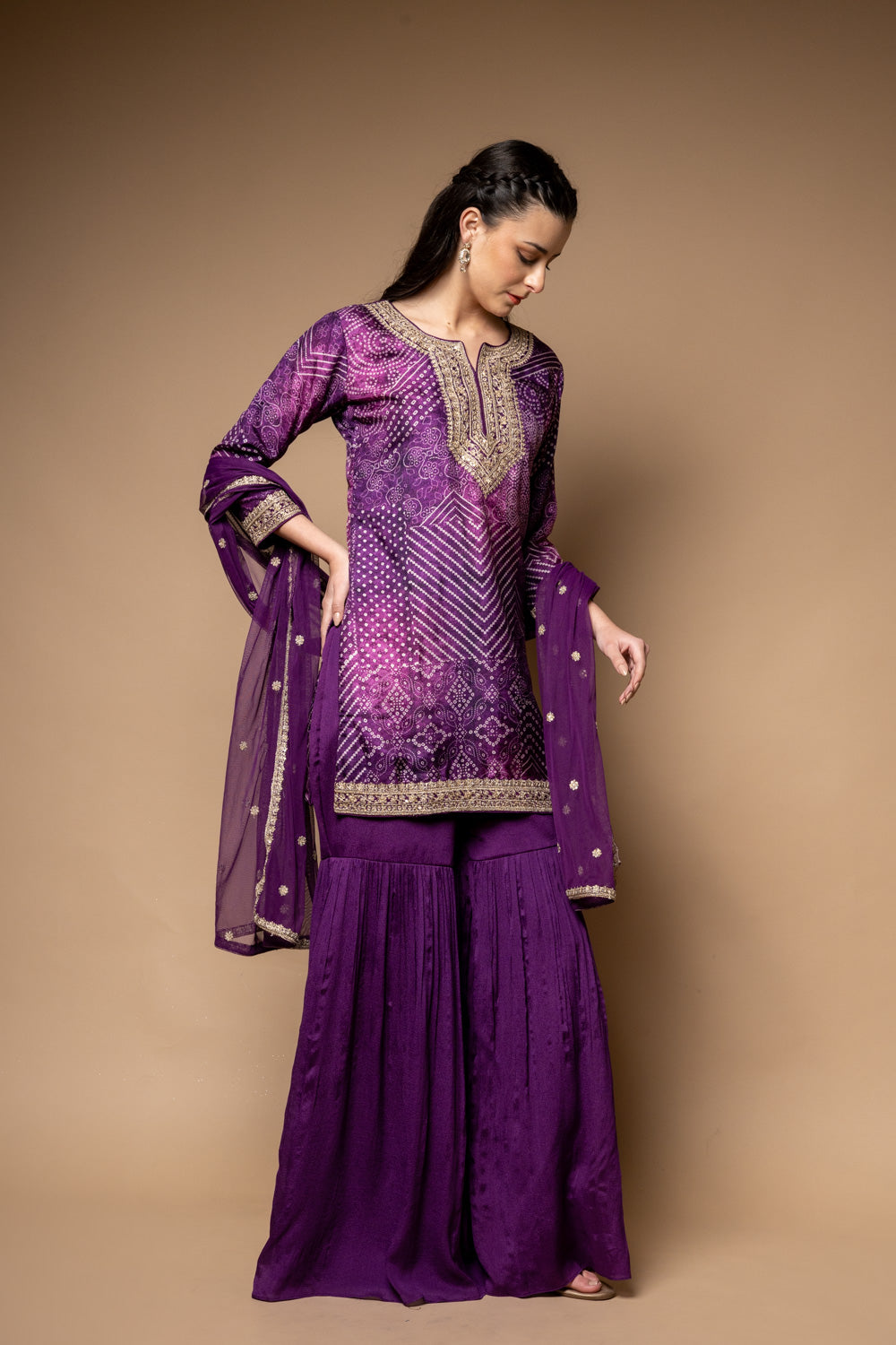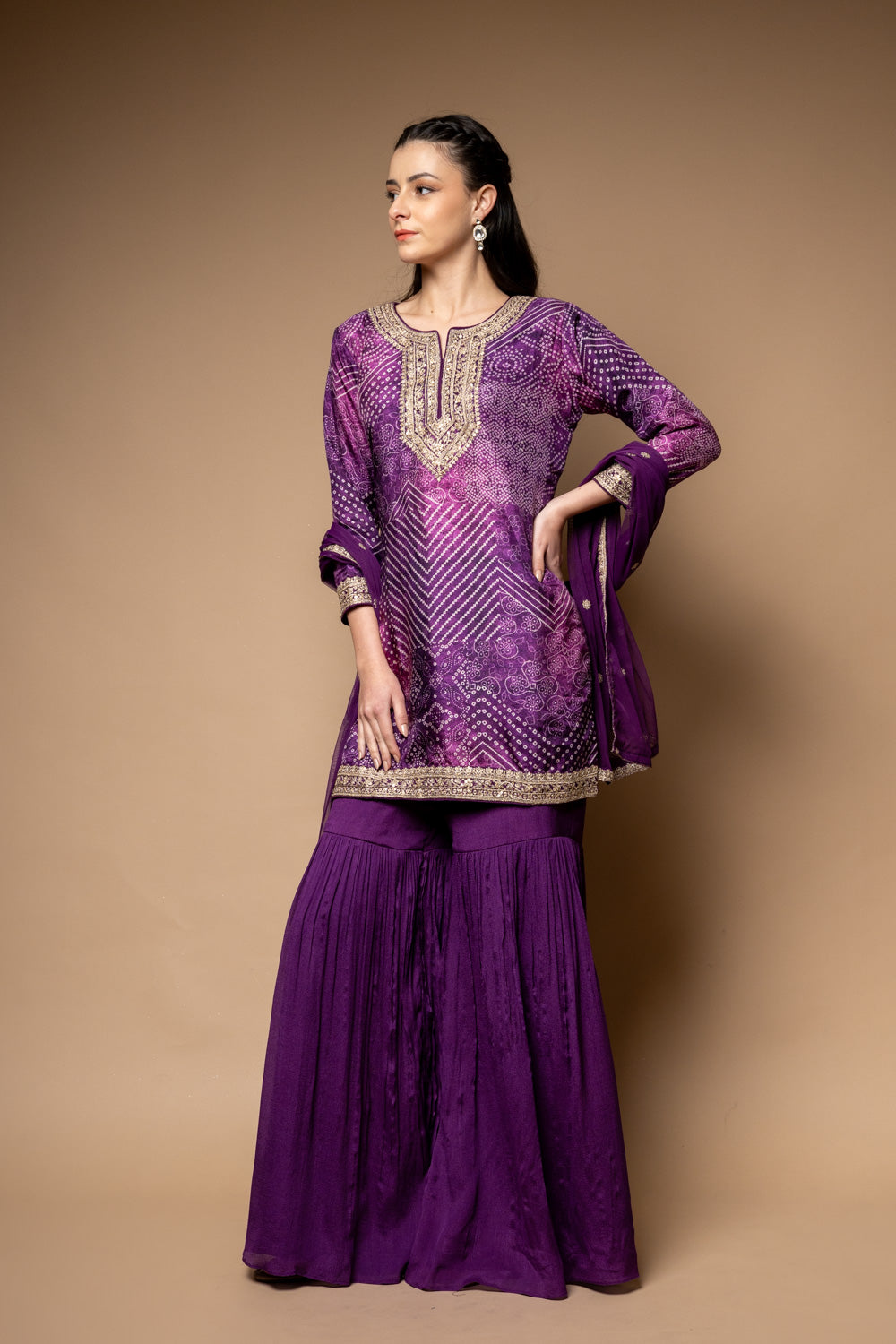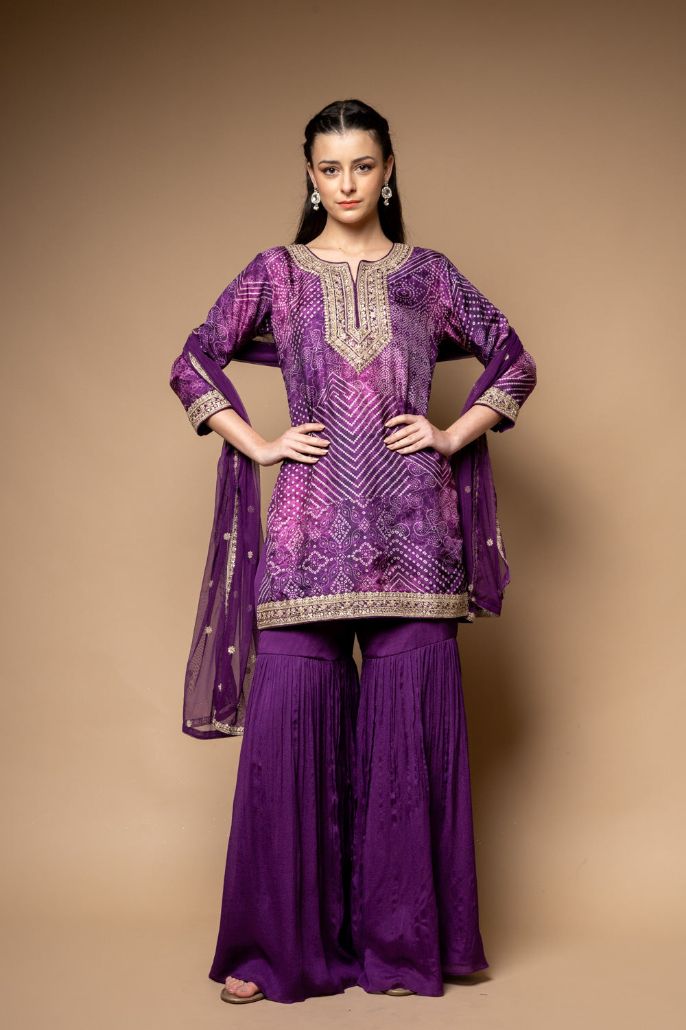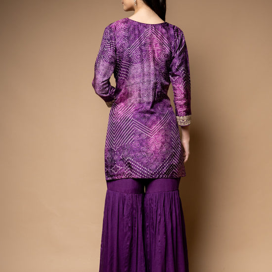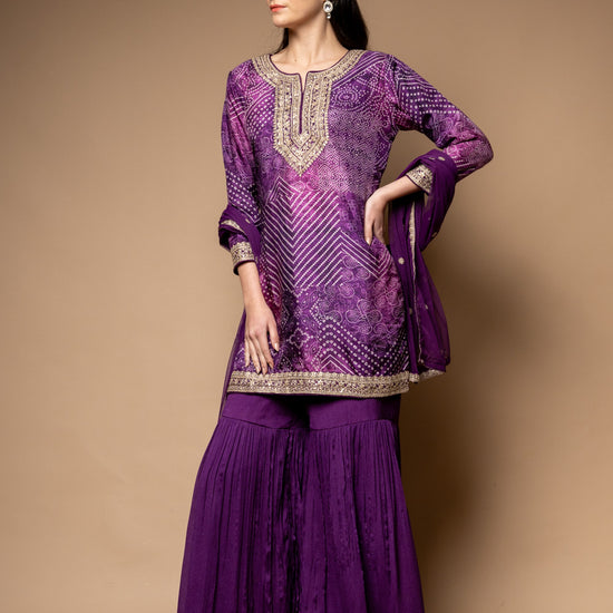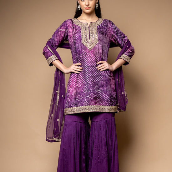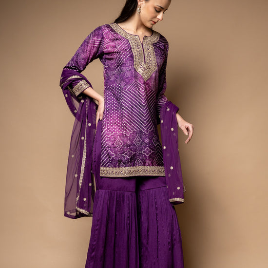 Panna Purple Soft Twill Readymade Sharara Set With Net Dupatta