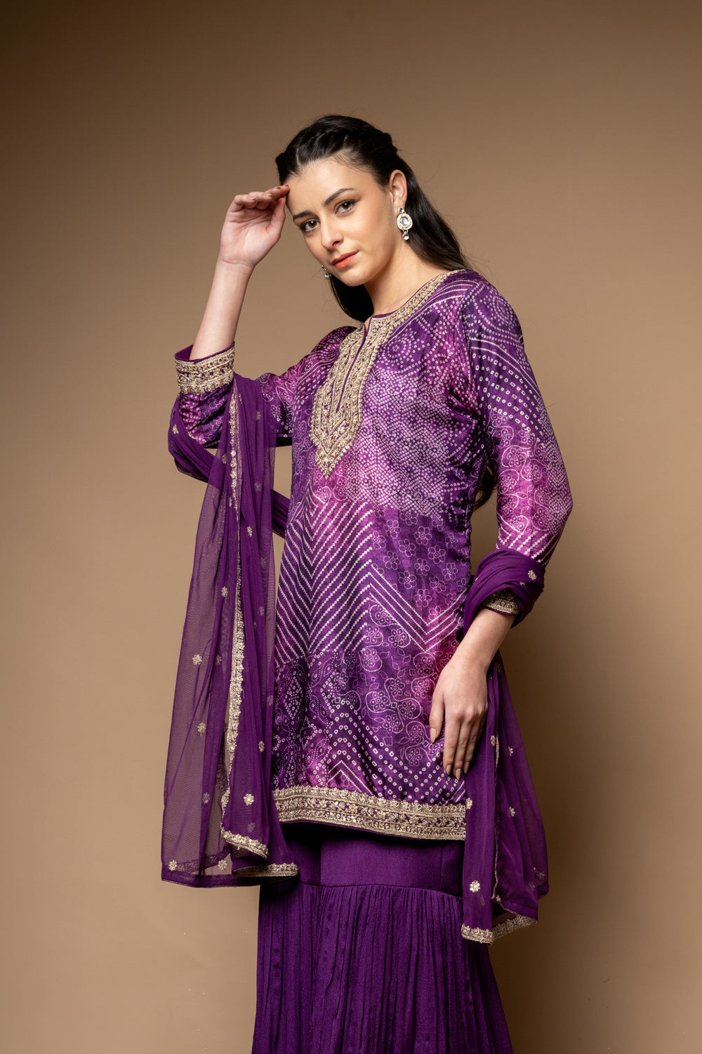 Work : Bandhini Print, Digital Print, Sequence & Zari Thread Work
