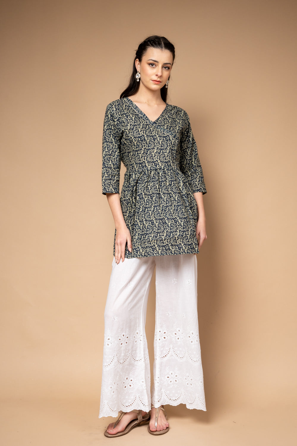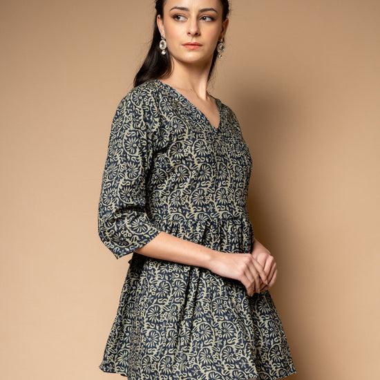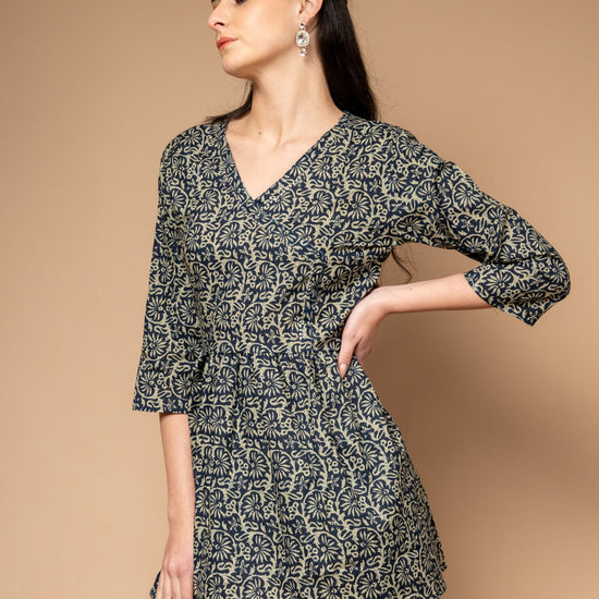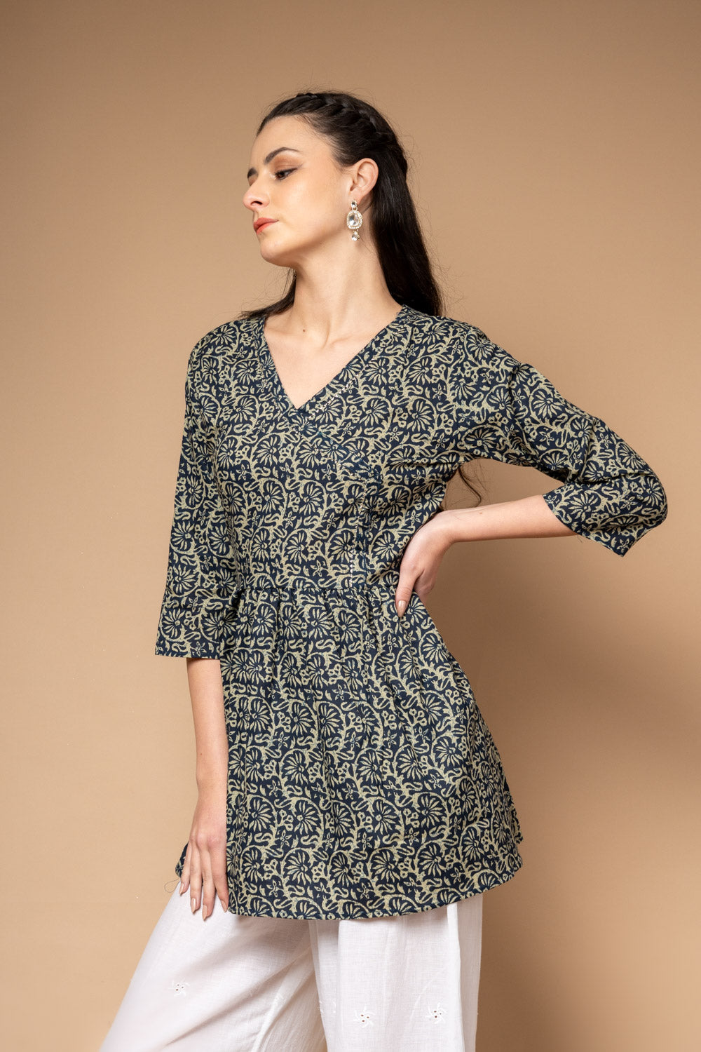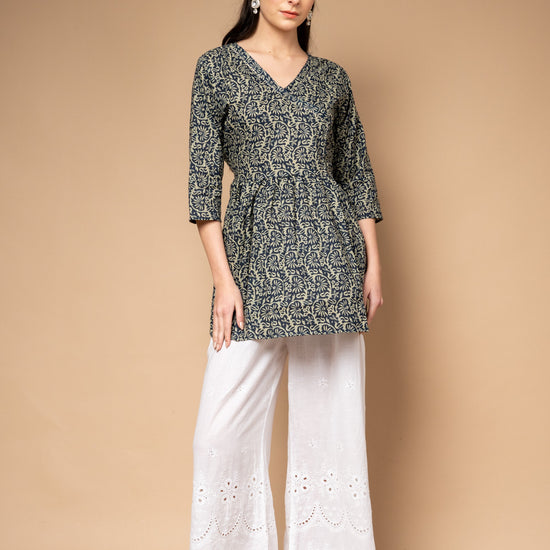 Panna Navy Blue Digital Printed Cotton Readymade Kurta