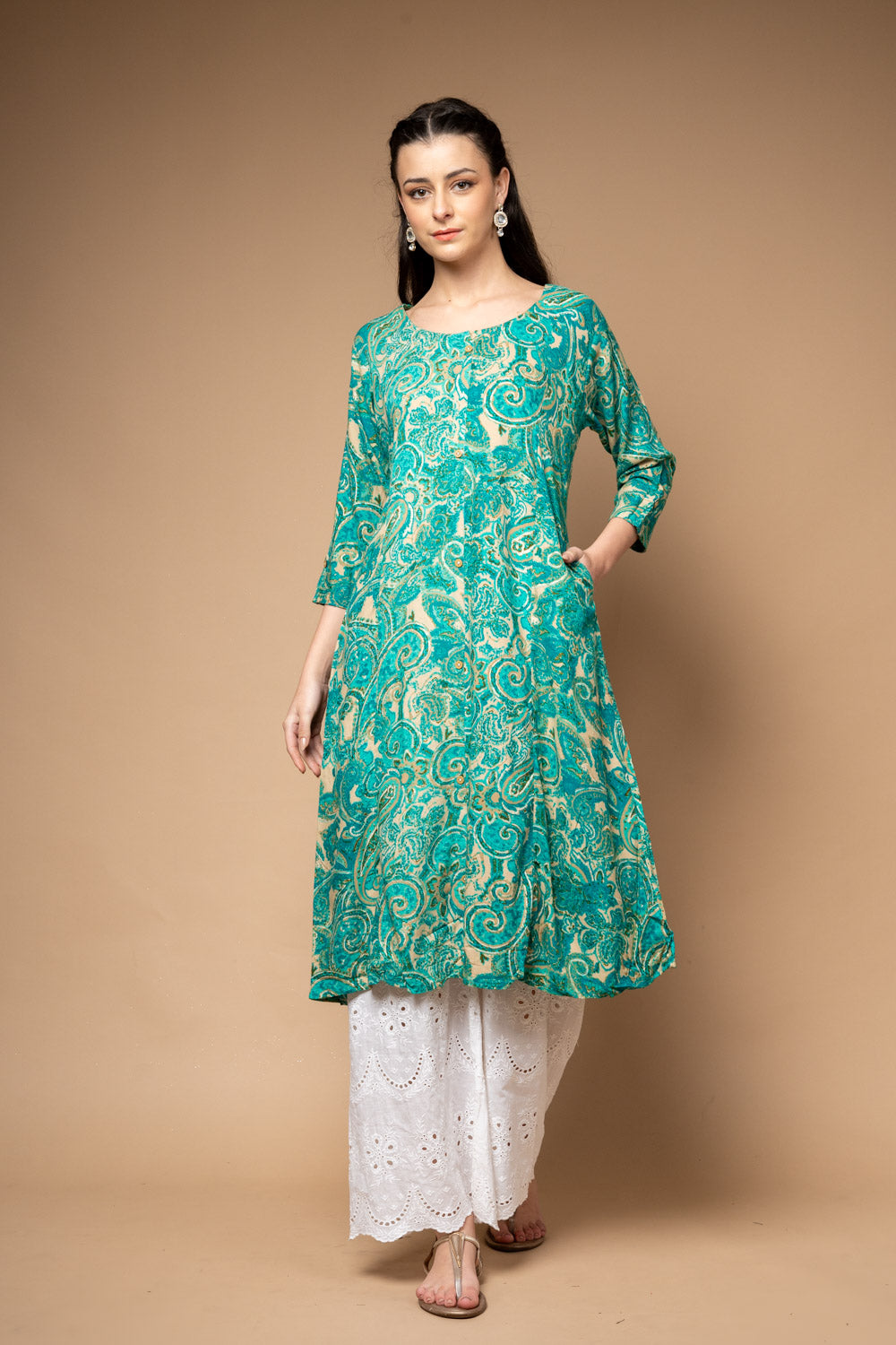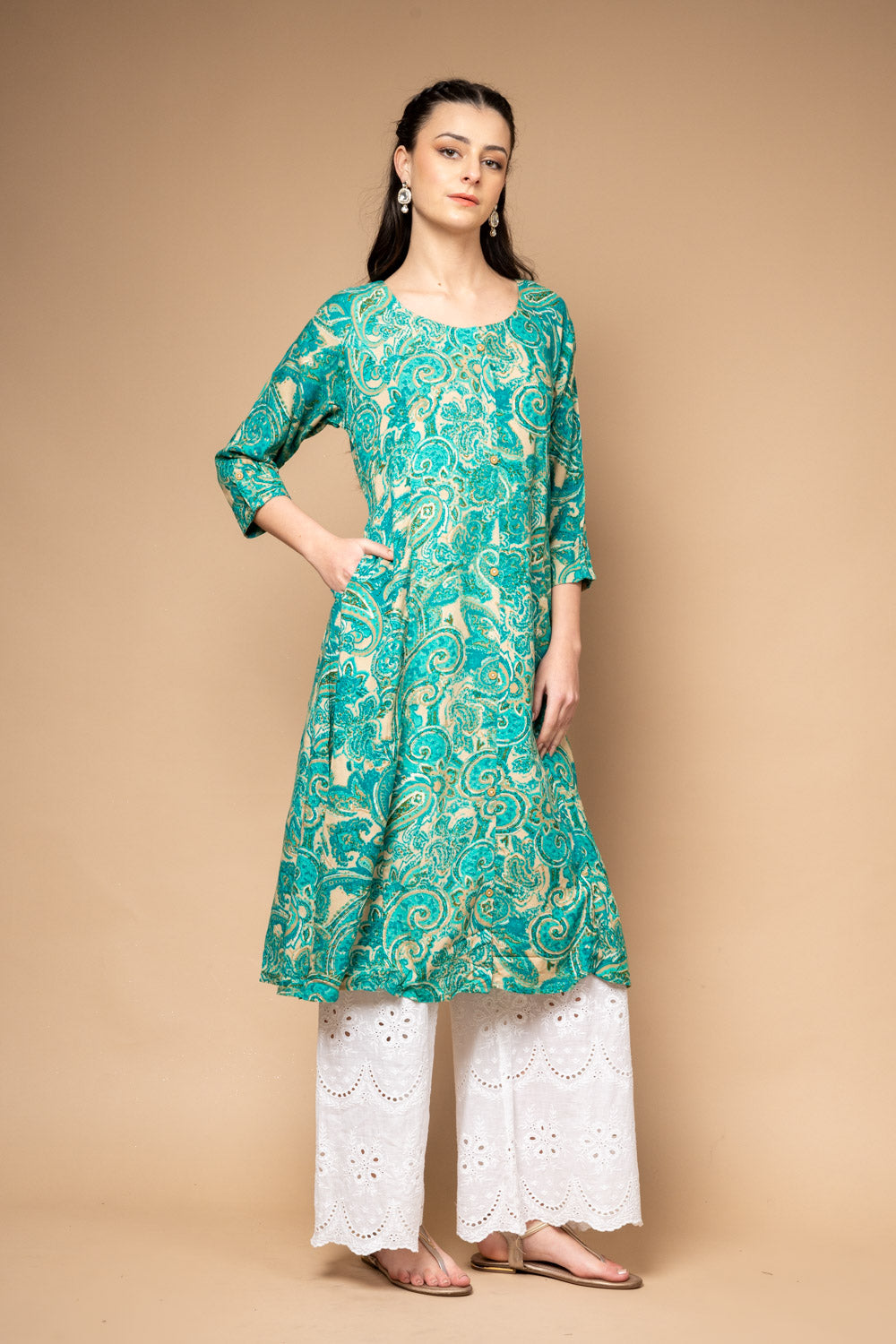 Panna Rama Digital Printed Cotton Readymade Long Kurta