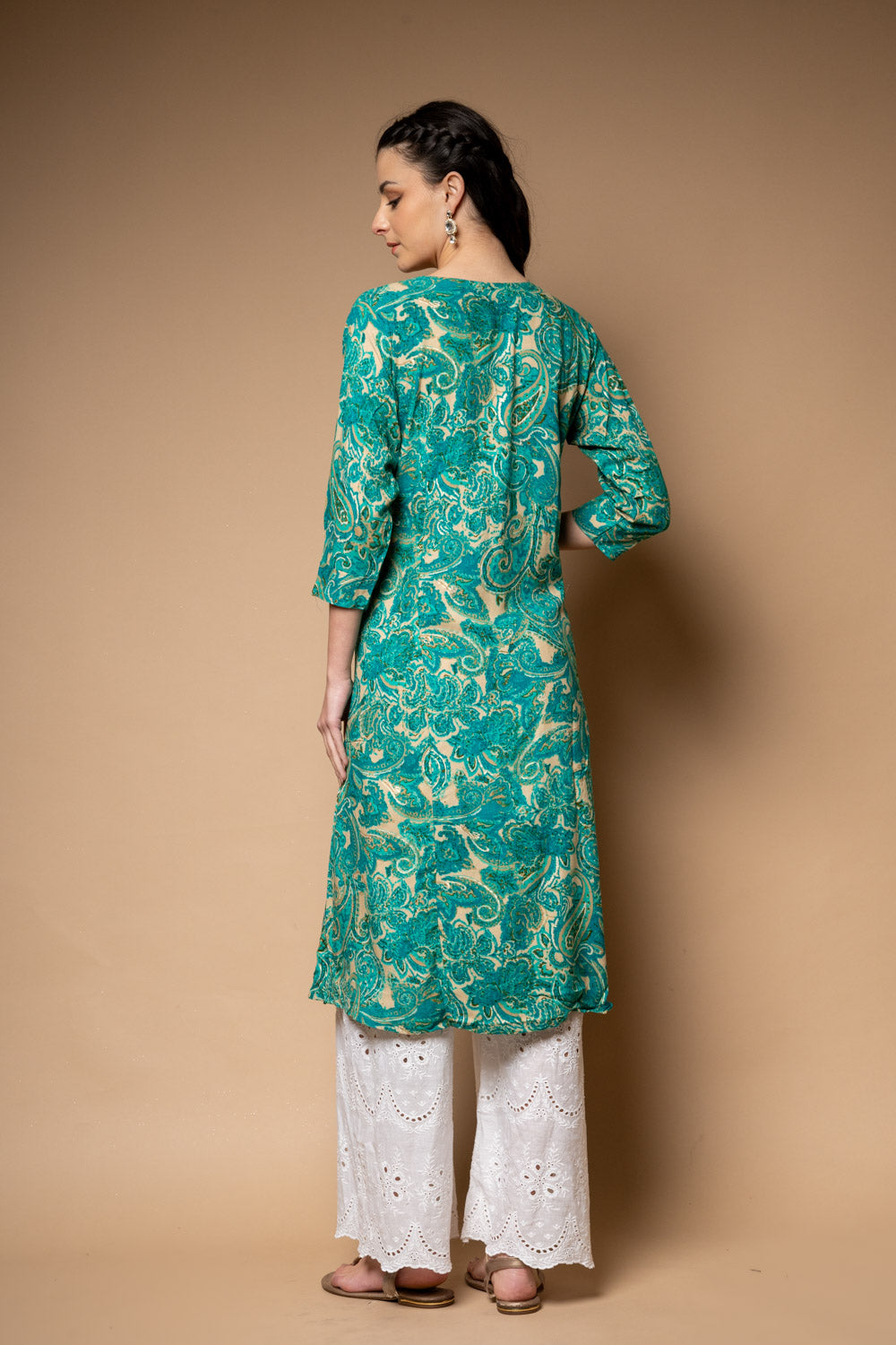 Crafted from Cotton, this ready-made Long Kurta features Digital Print and is perfect for Formal Occasion. Its Lightweight design ensures comfort and style. Follow Dry Wash / Dry Clean.