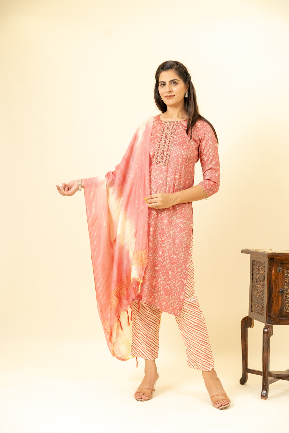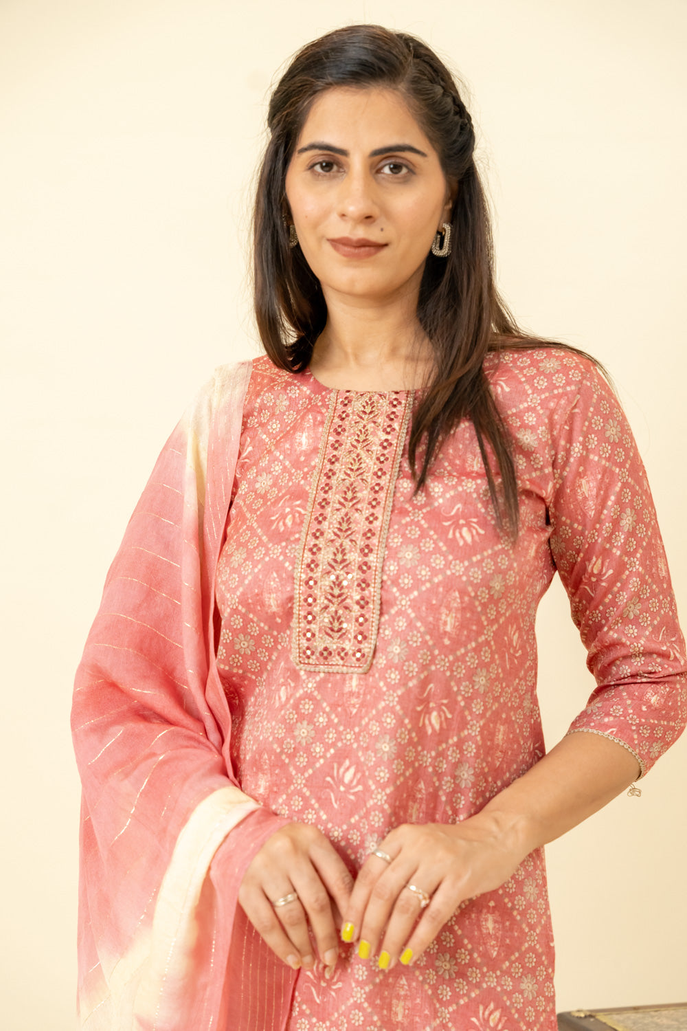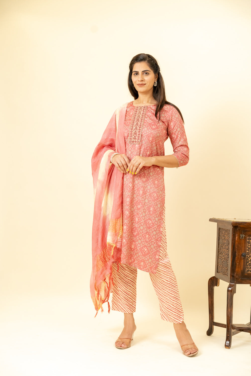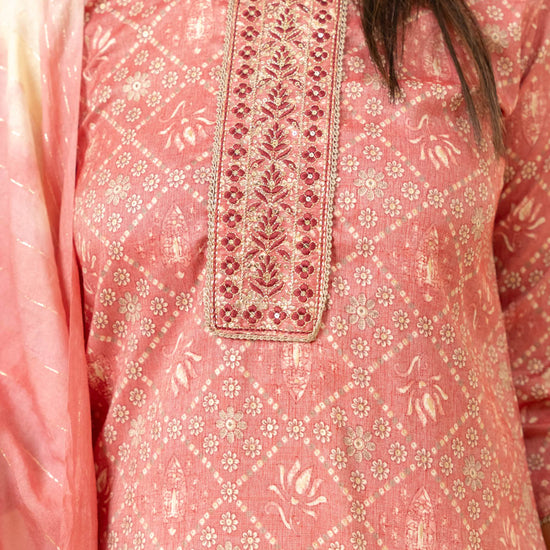 Gajari Cotton Readymade Suit And Pant With Cotton Dupatta