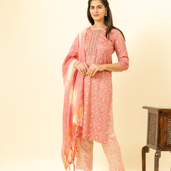 Gajari Cotton Readymade Suit And Pant With Cotton Dupatta – The Panna Shop