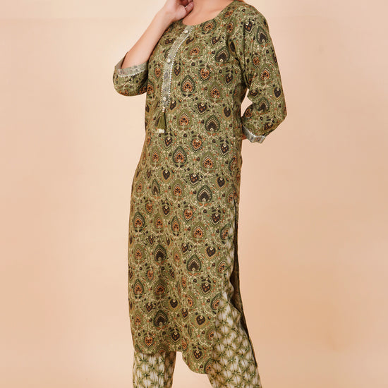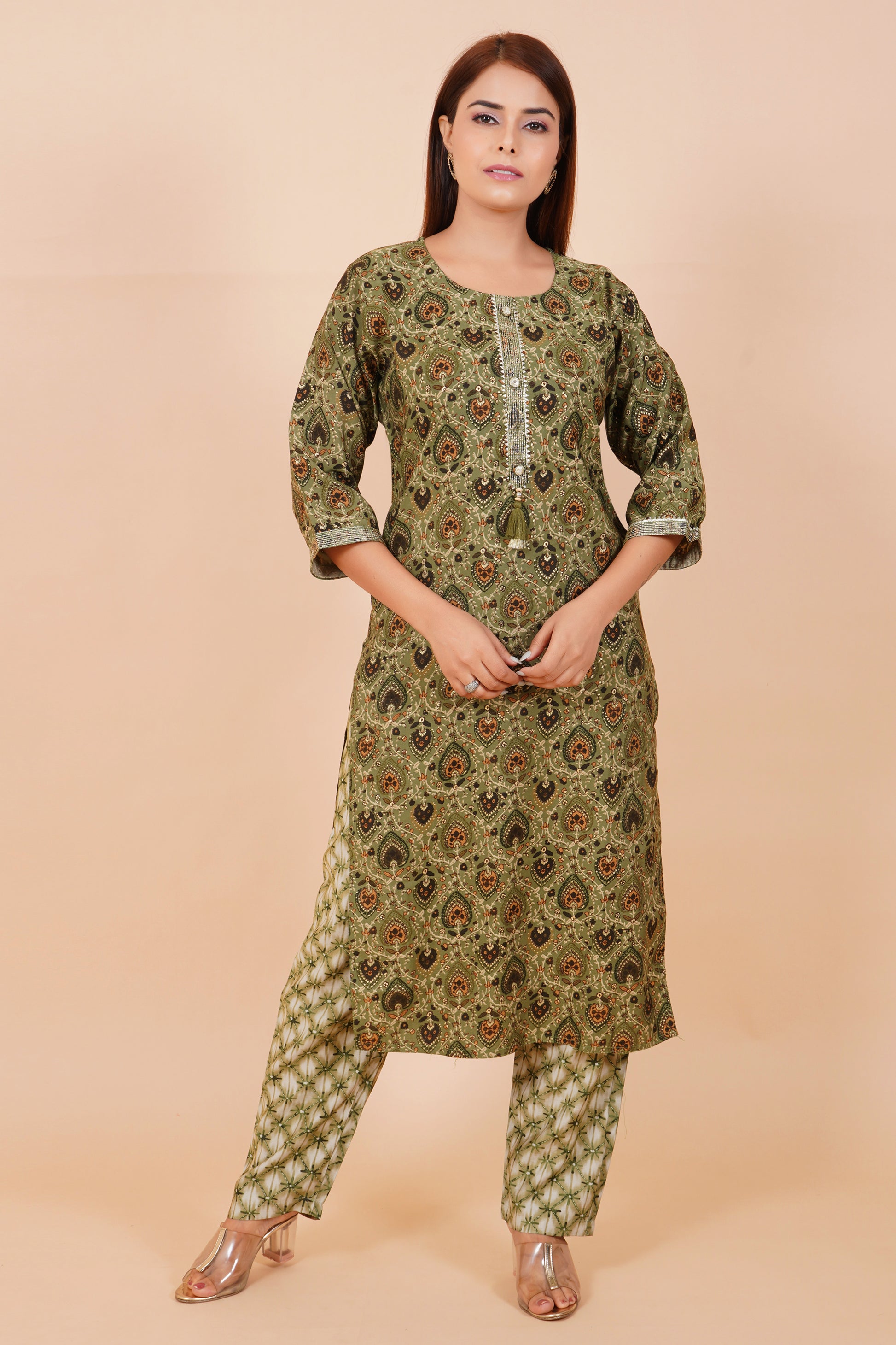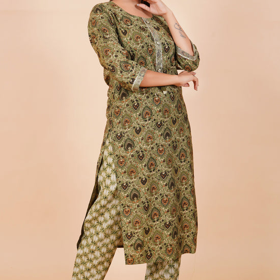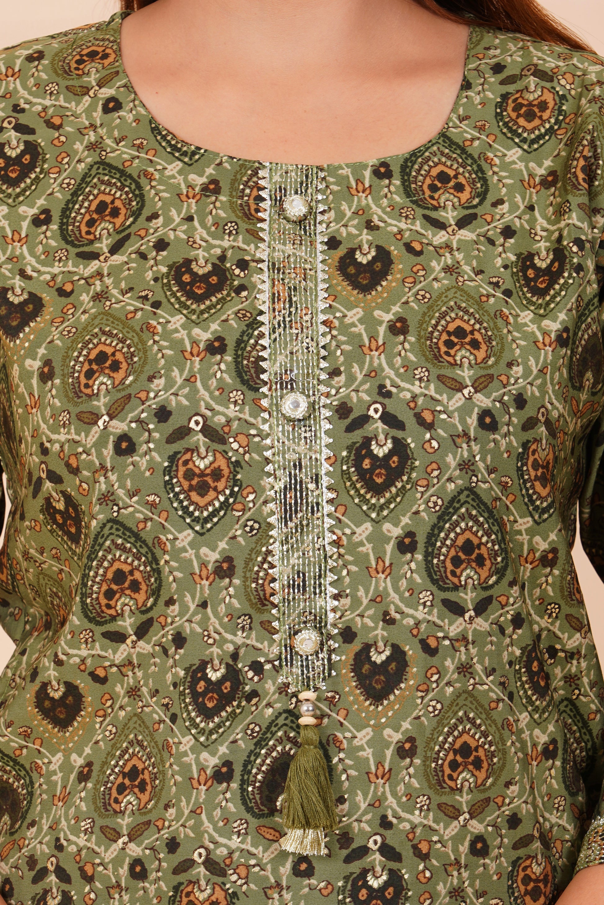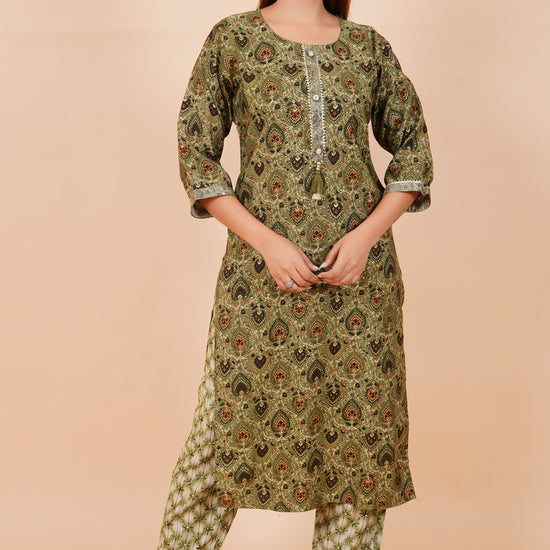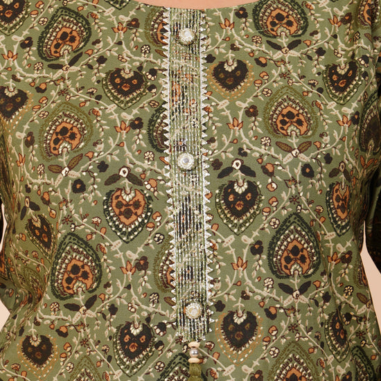 Panna Pista Cotton Embroidered Readymade Suit With Pant