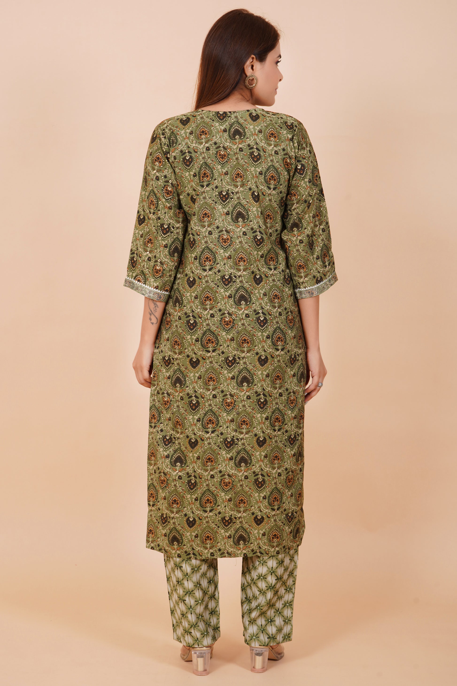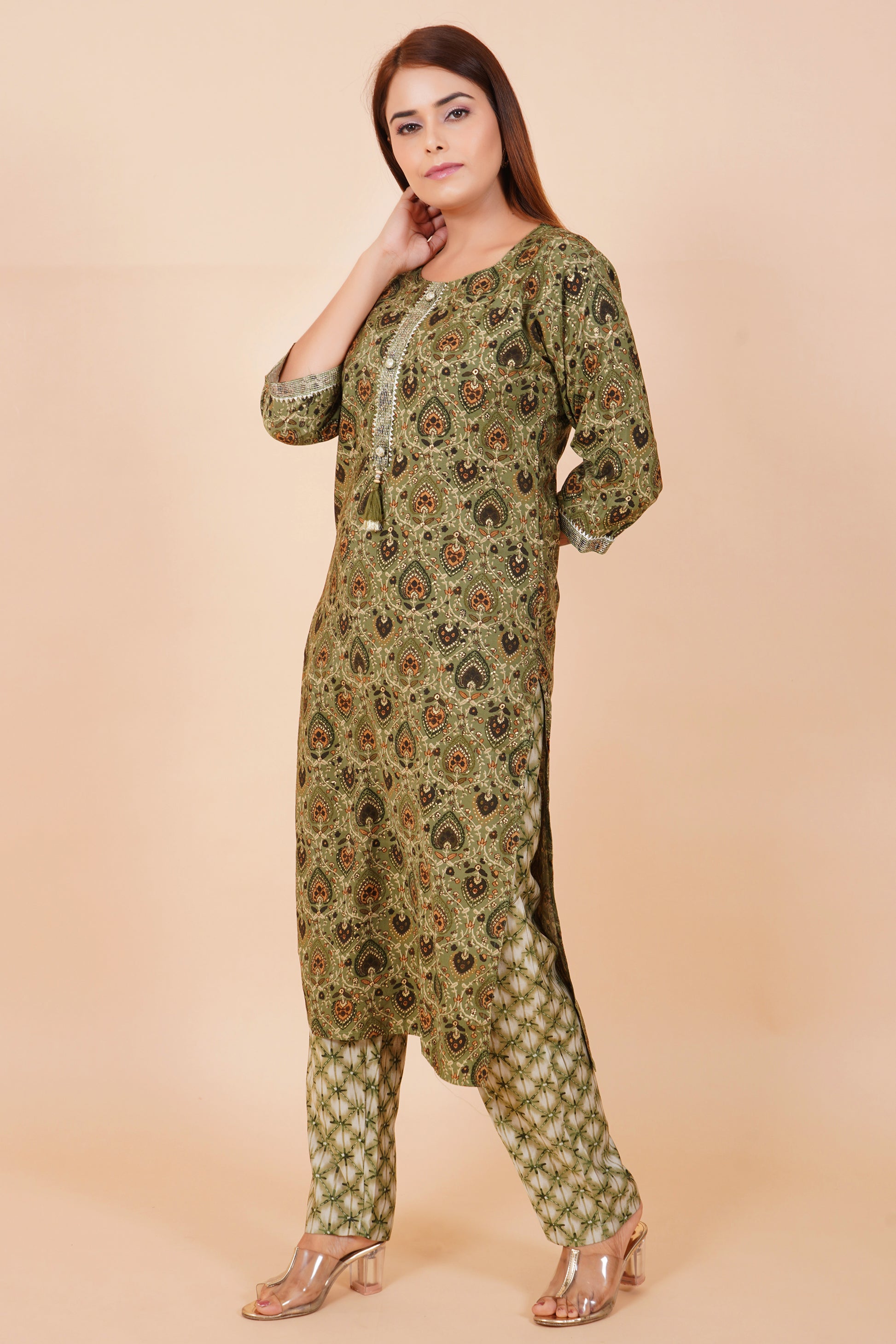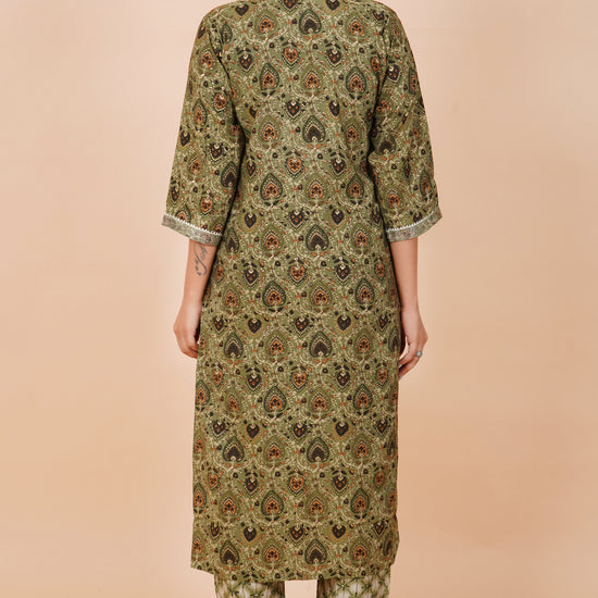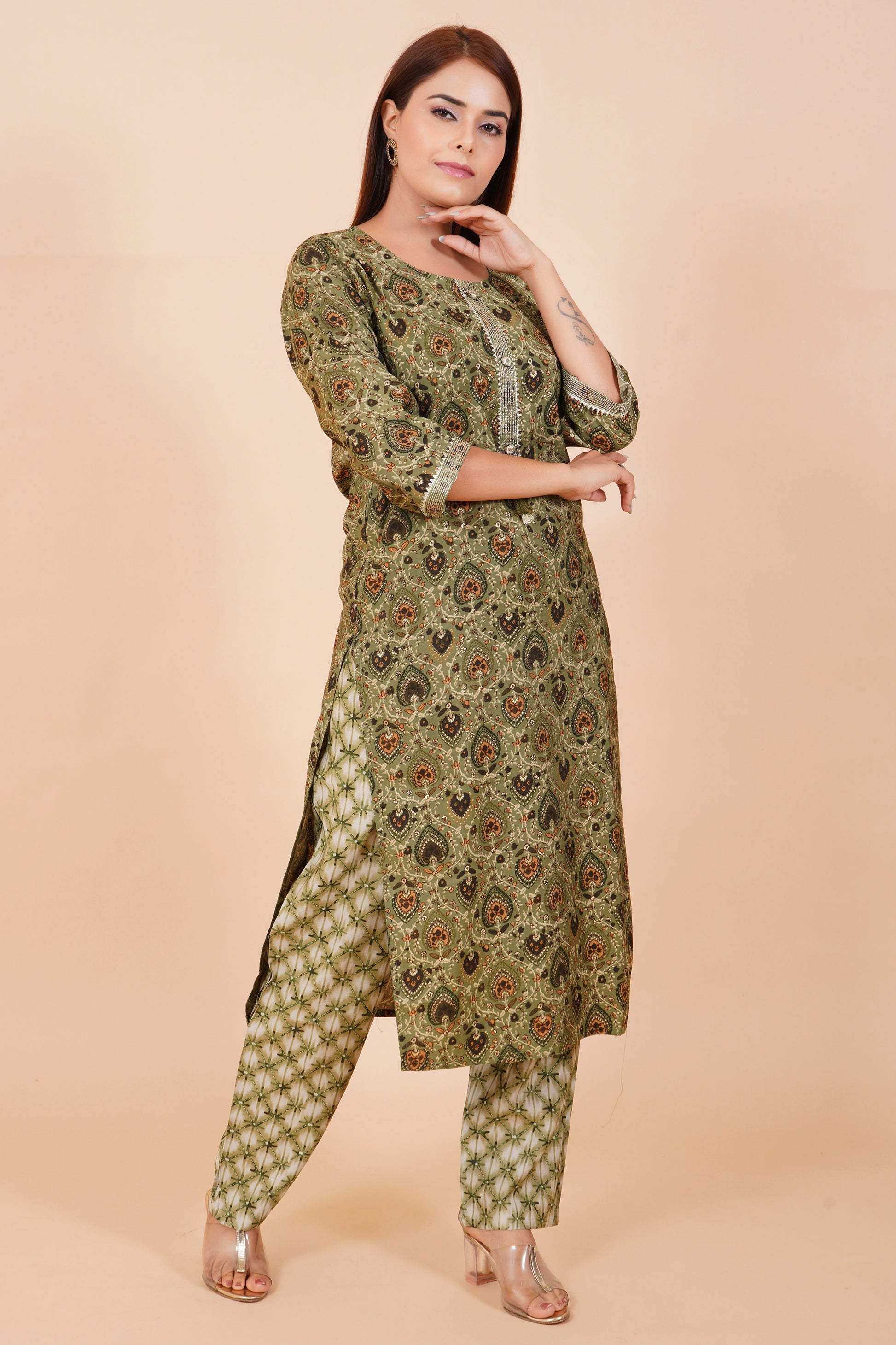 Panna Pista Cotton Embroidered Readymade Suit With Pant
