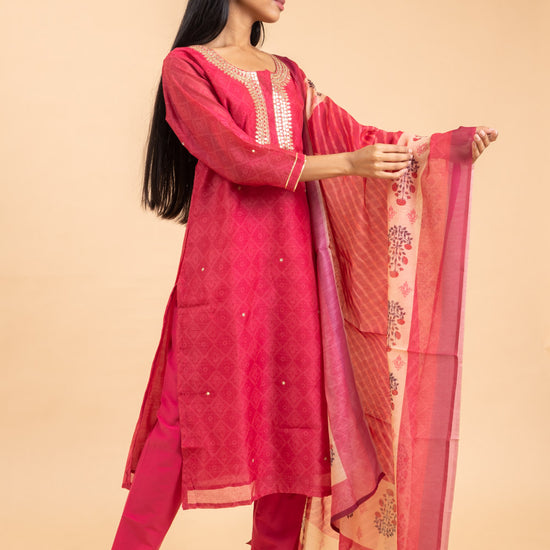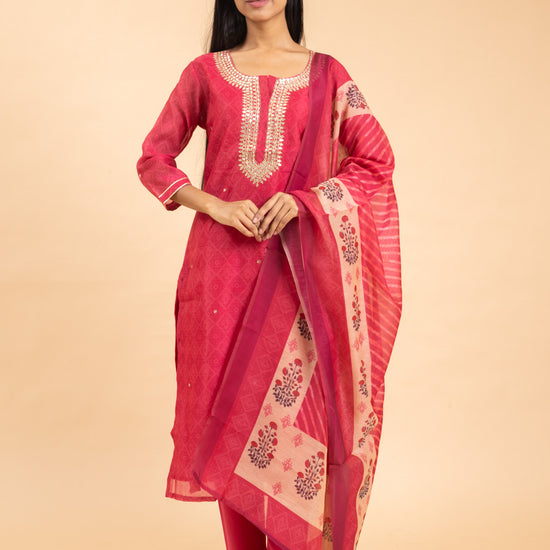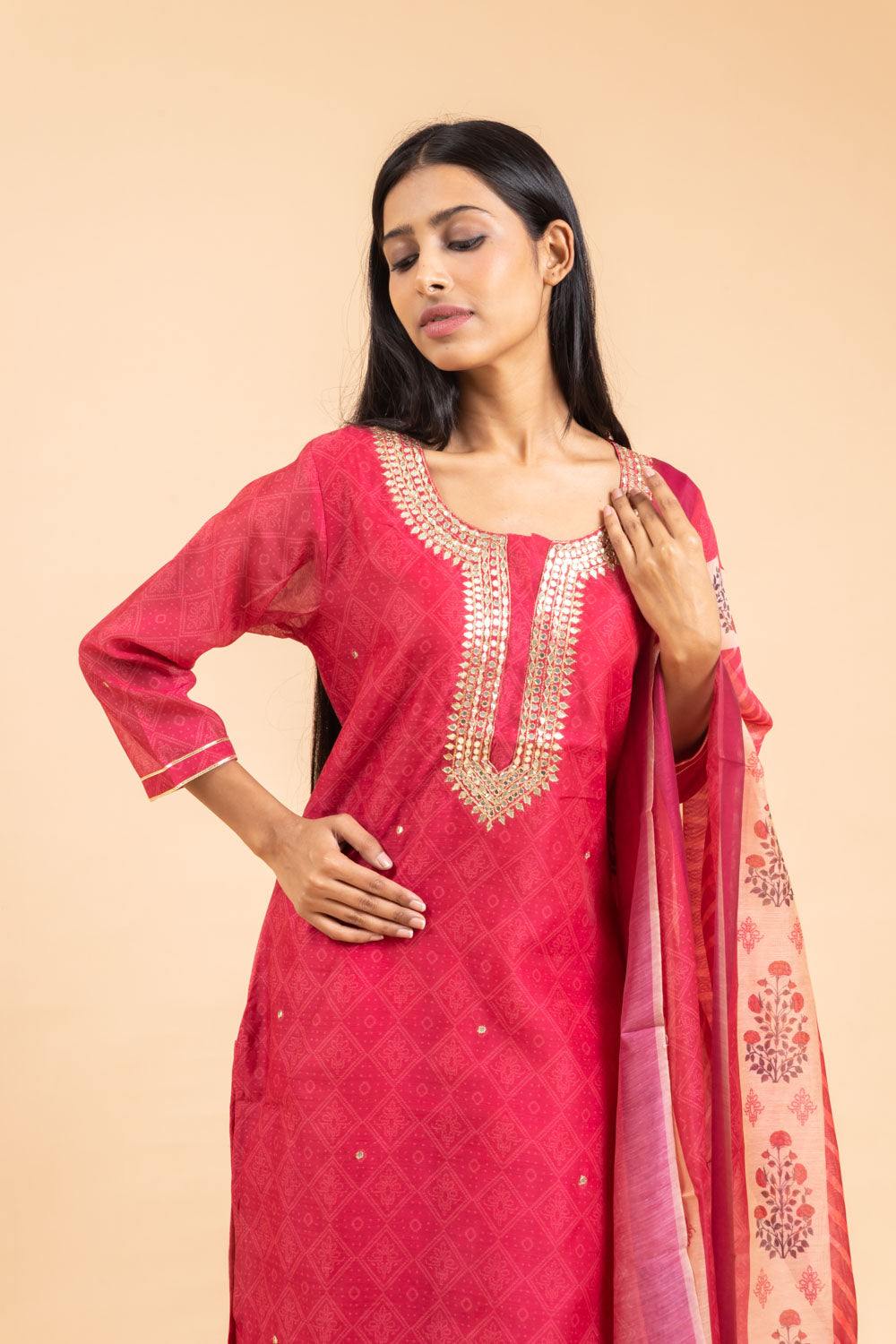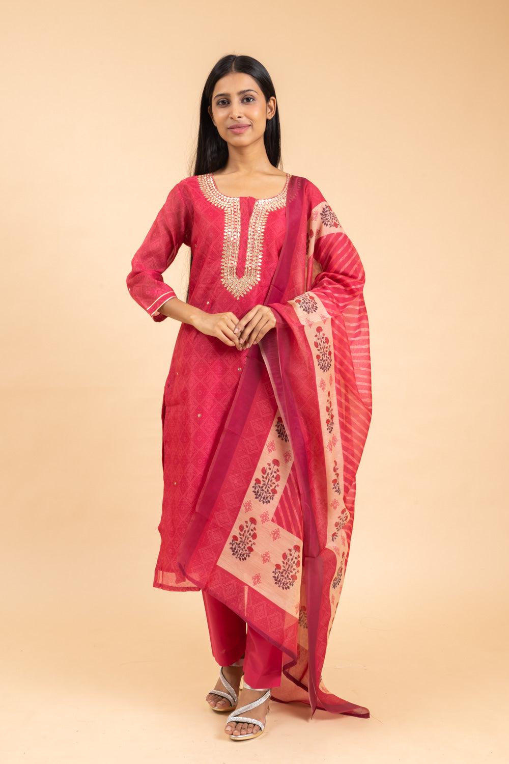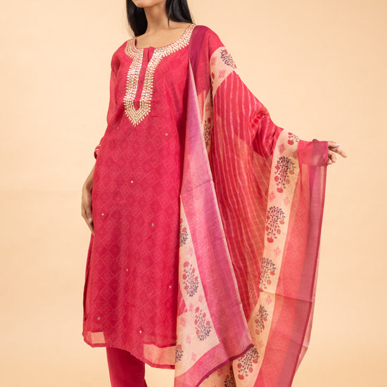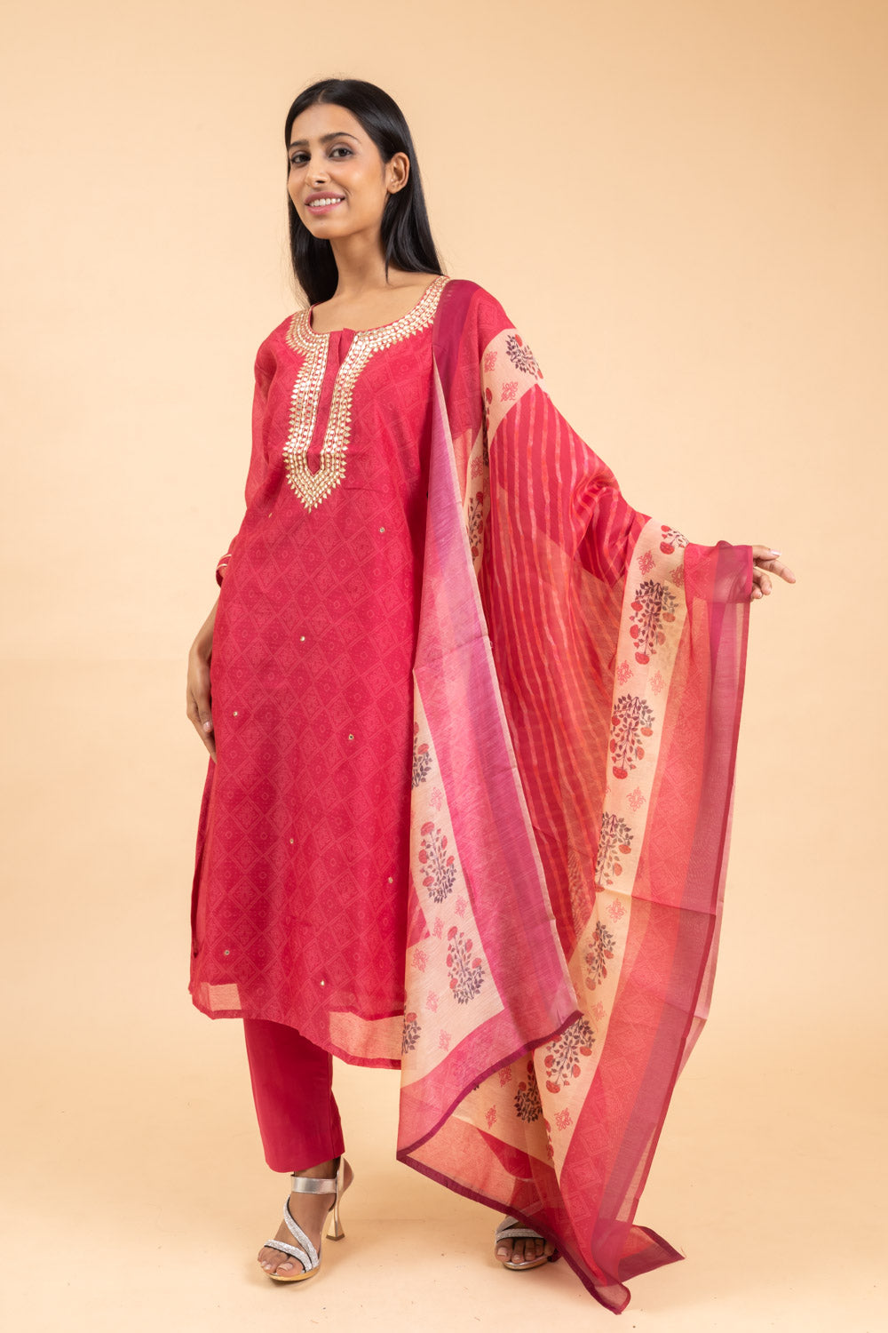 Panna Rani Muslin Readymade Suit And Pant With Chanderi Cotton Dupatta