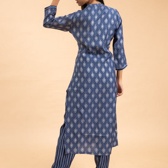 Panna Grey Cotton Embroidered Readymade Suit With Pant