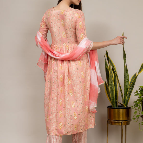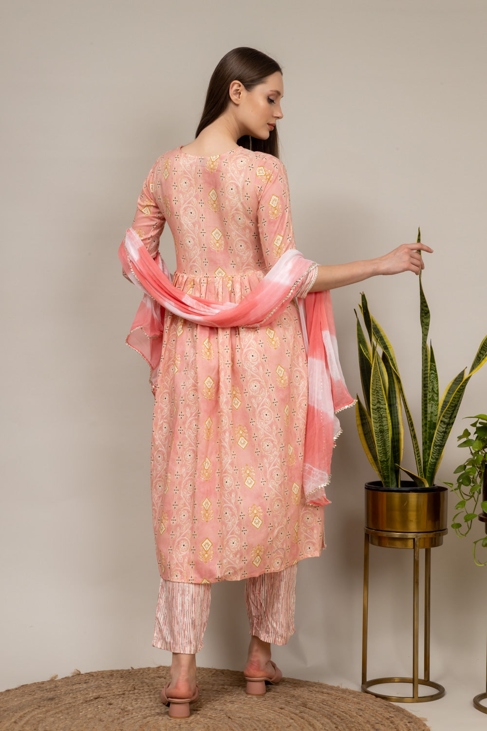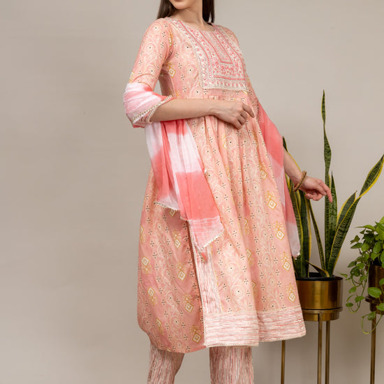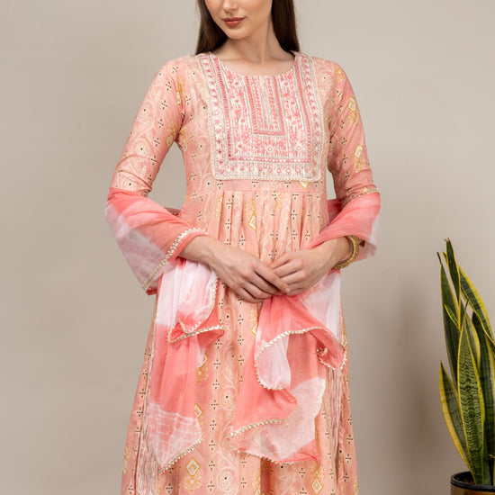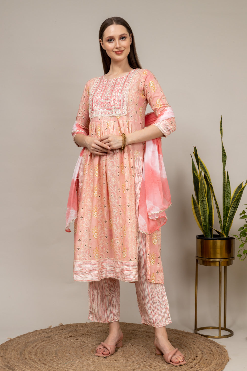 Panna Peach Cotton Readymade Suit And Pant With Chiffon Dupatta