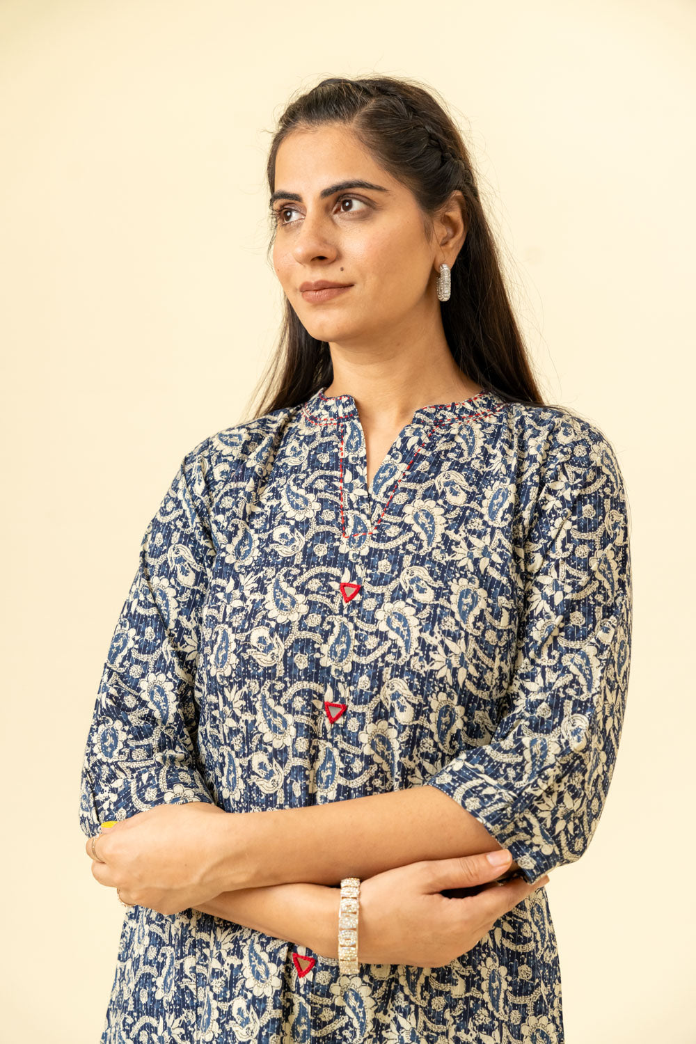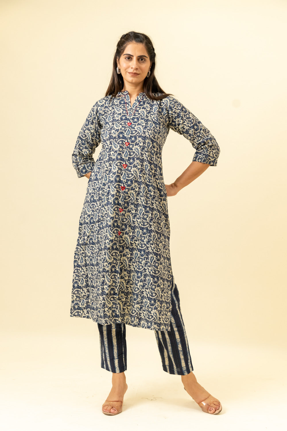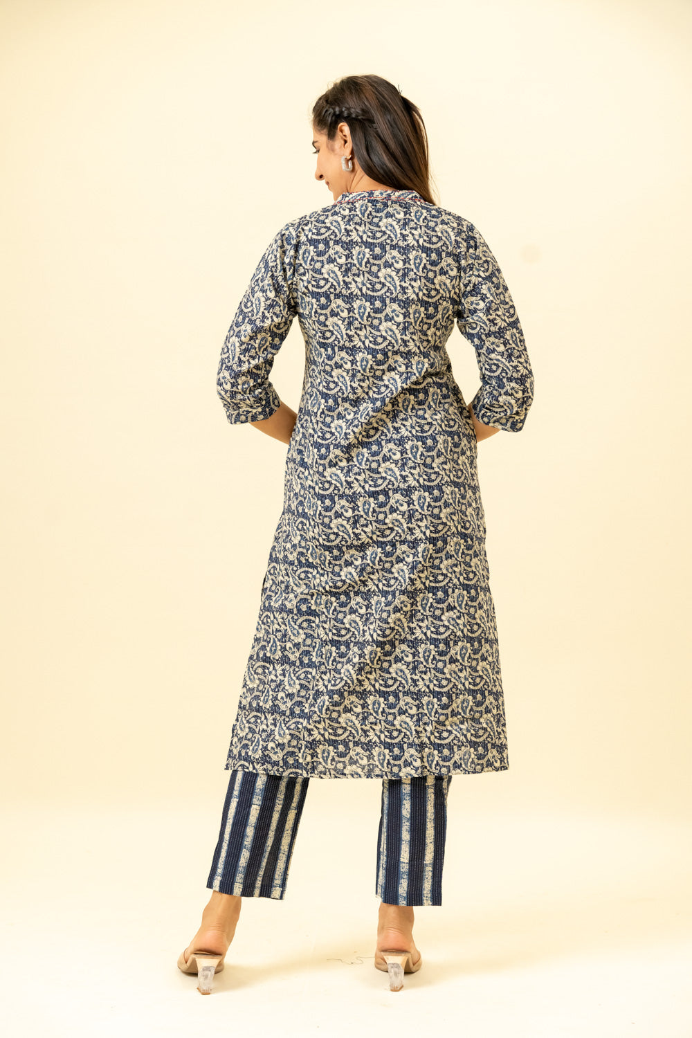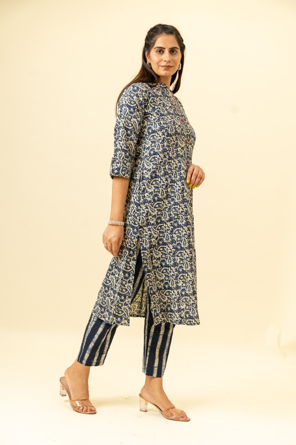 Panna Midnight Blue Digital Printed Cotton Readymade Suit With Pant