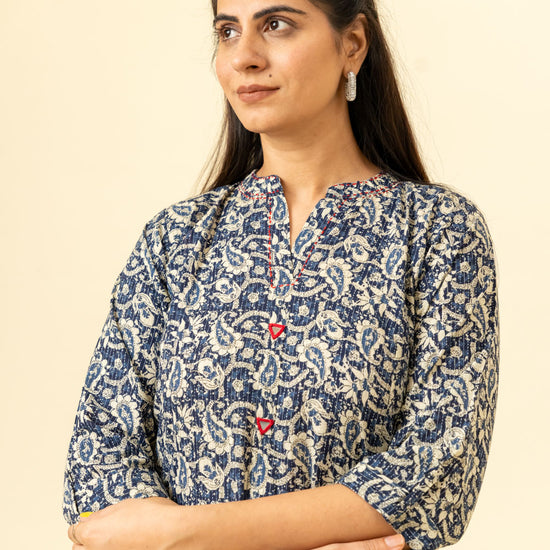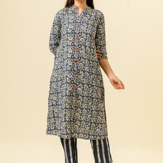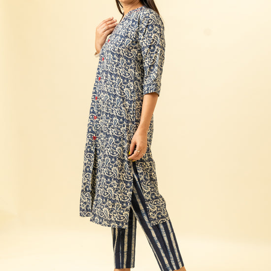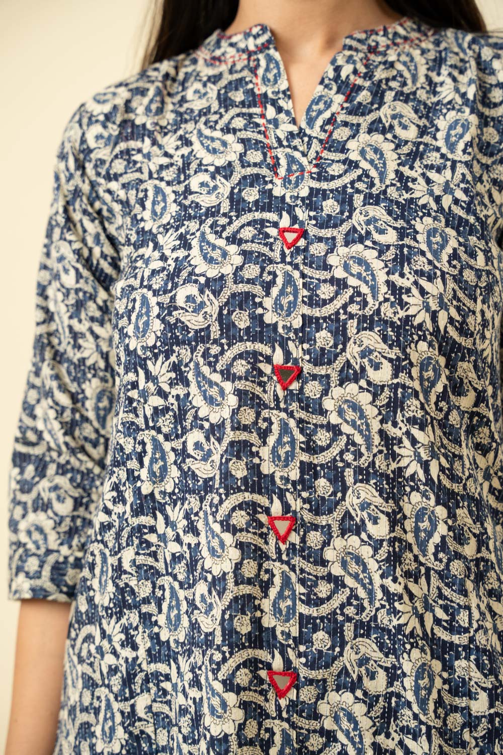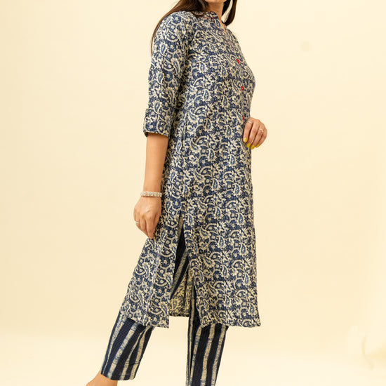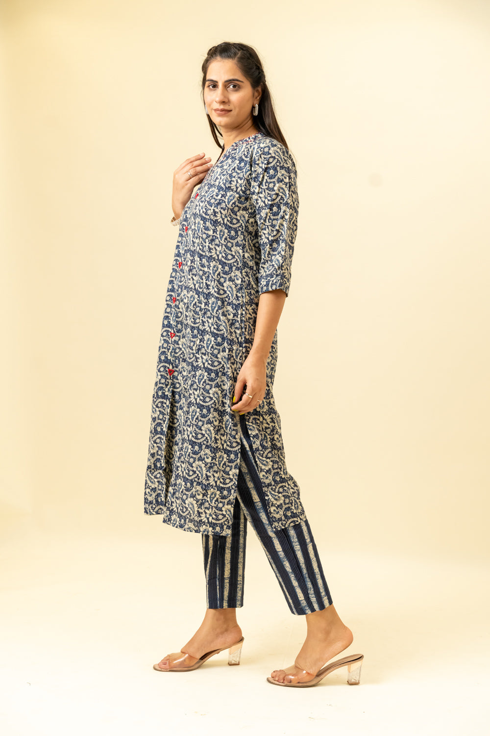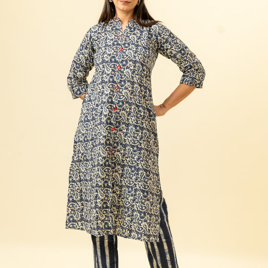 Panna Midnight Blue Digital Printed Cotton Readymade Suit With Pant
