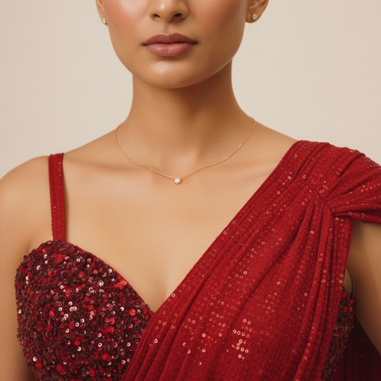 Panna Red Lycra Pre-Draped Designer Saree With Readymade Blouse