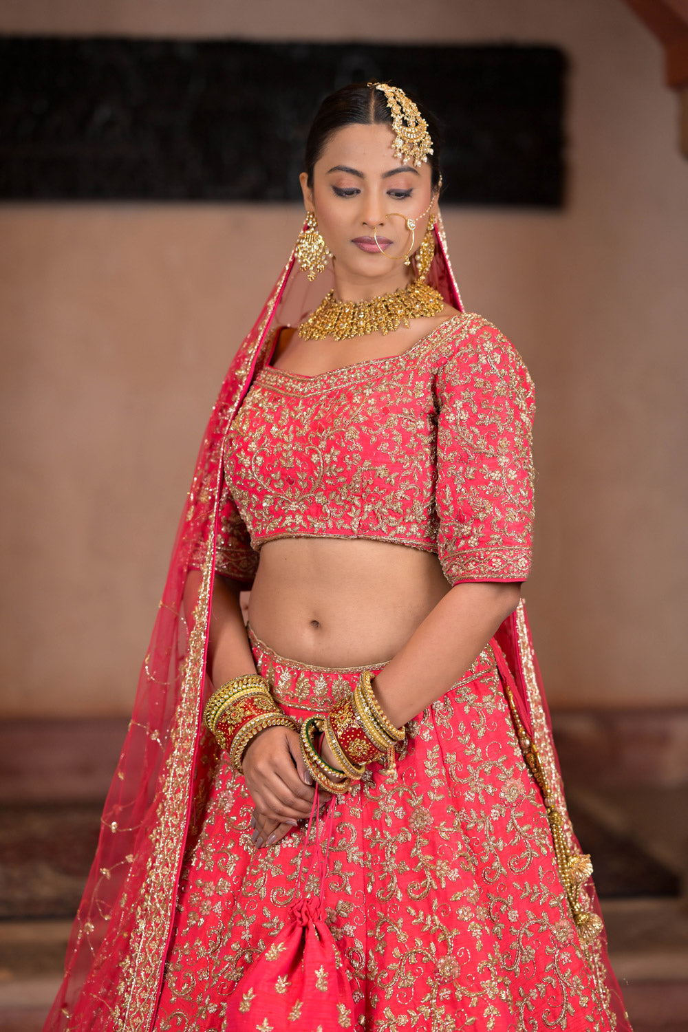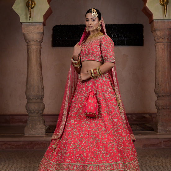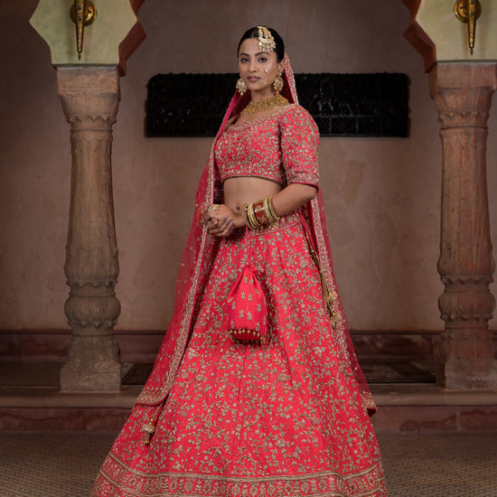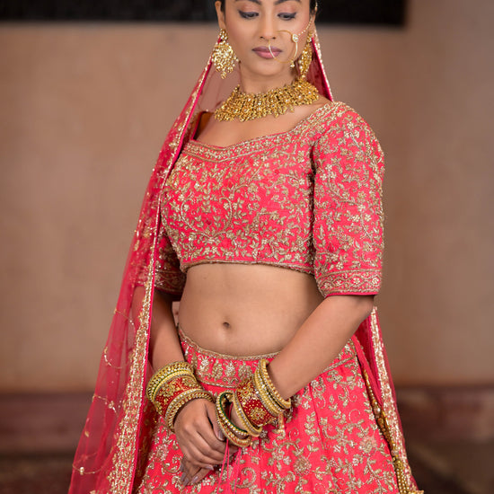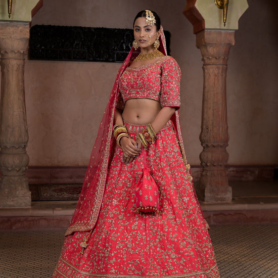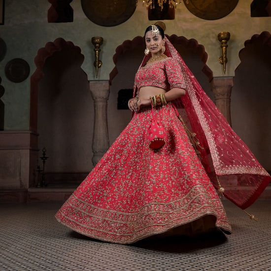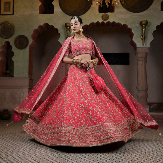 This Raw Silk Lehenga is perfect for those who want to add a touch of elegance to their wardrobe. Made from high-quality raw silk, it has a rich texture and a subtle sheen that exudes luxury. The intricate embroidery and delicate embellishments give it a traditional look, while the modern cut and design make it perfect for any formal occasion.