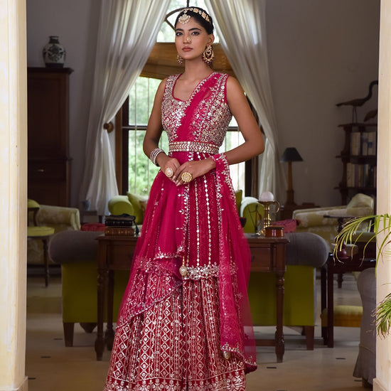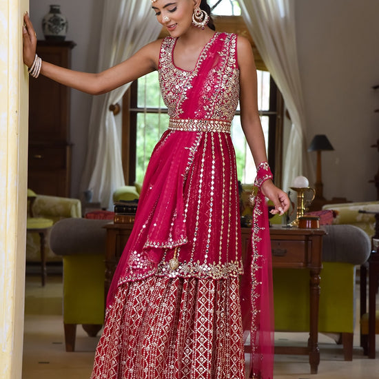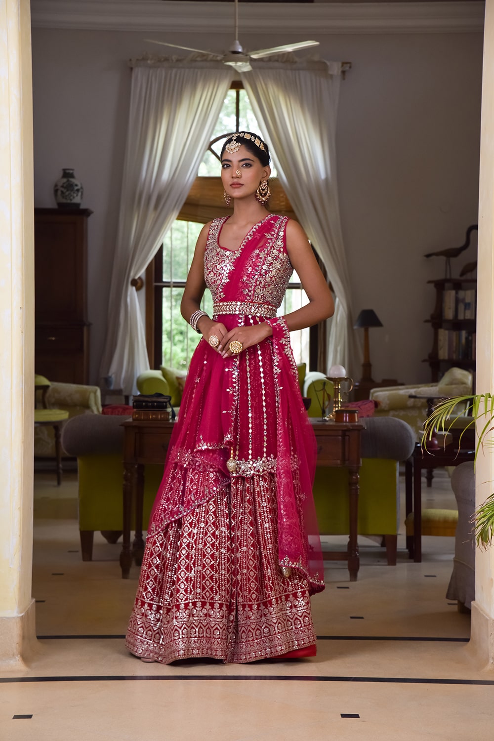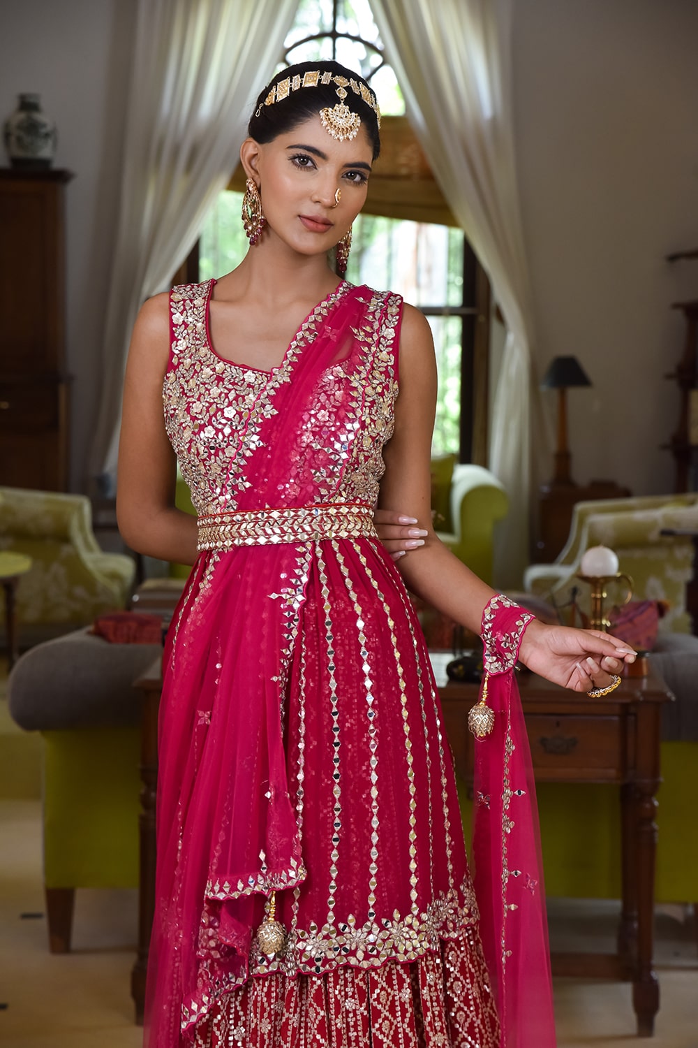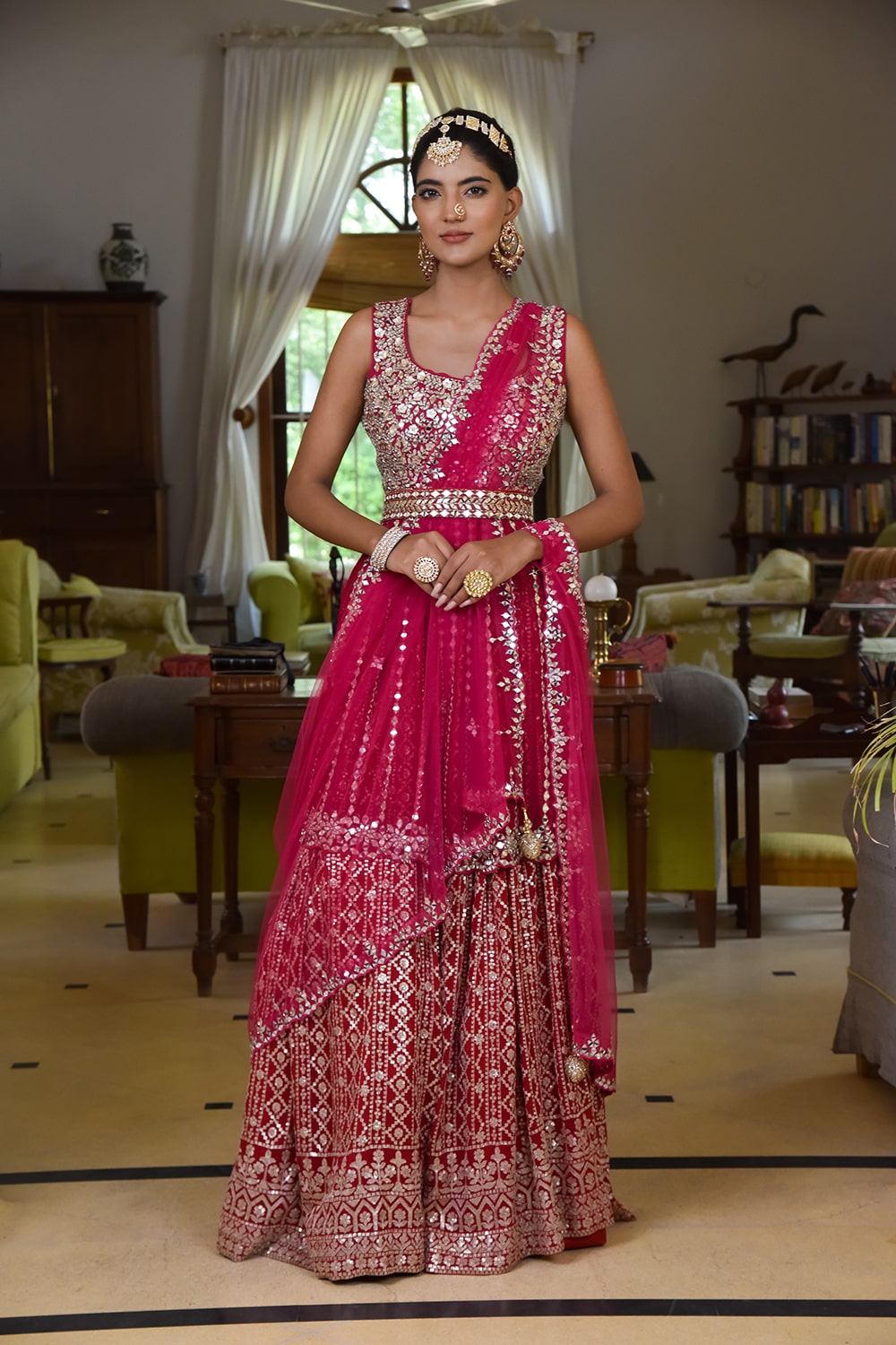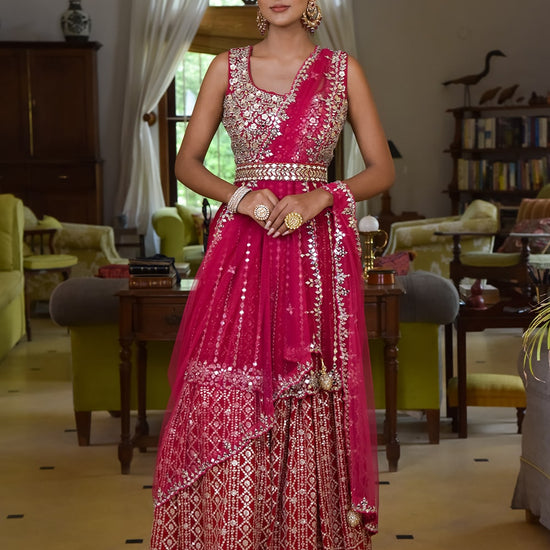 Panna Maroon Georgette Lehenga Set And Georgette Dupatta With Readymade Blouse
