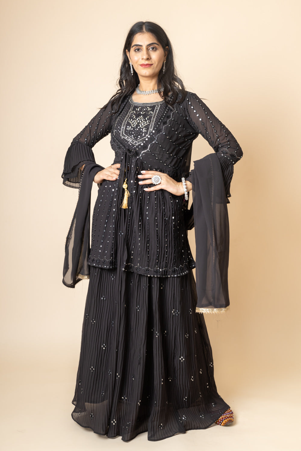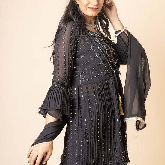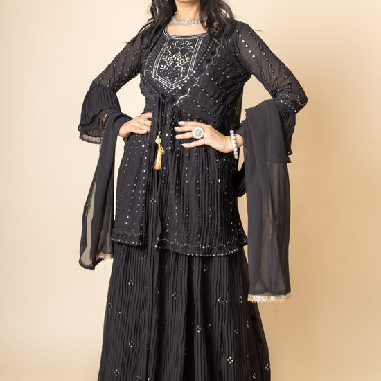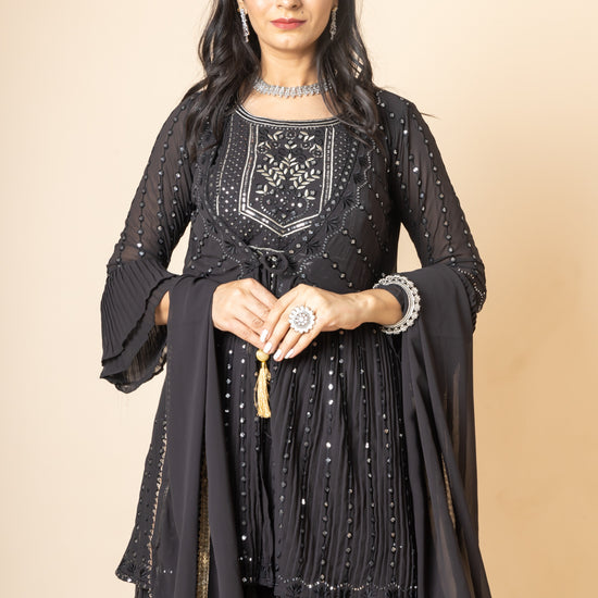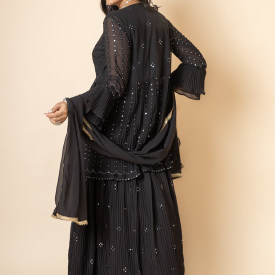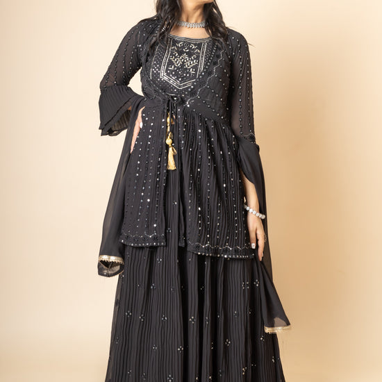 Panna Black Sequence & Zari Threadwork Georgette Lehenga Set And Jacket With Georgette Dupatta