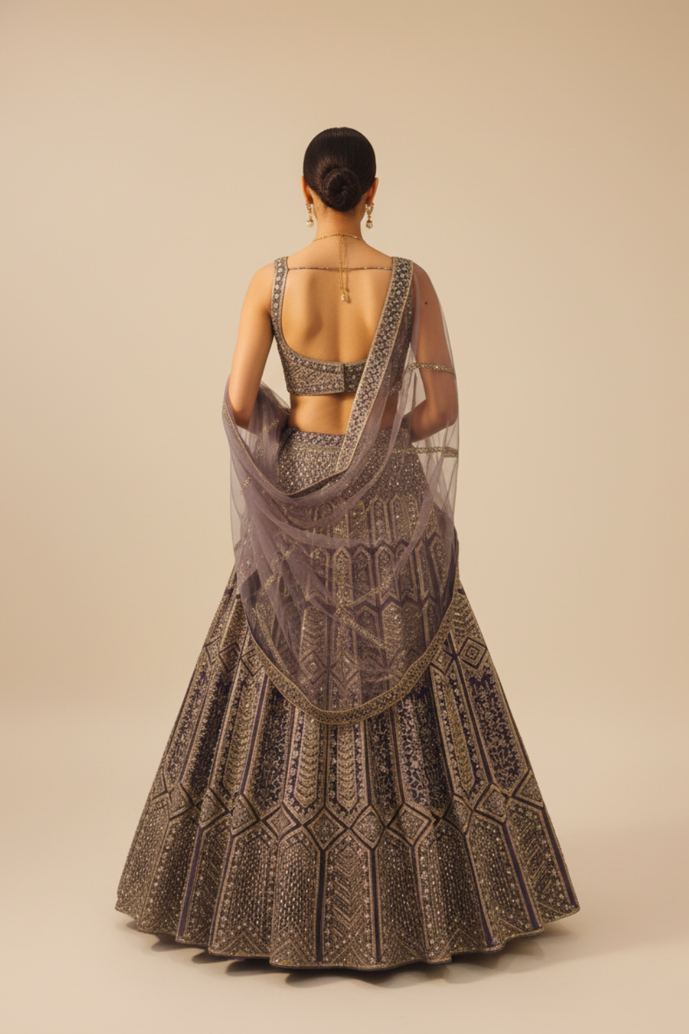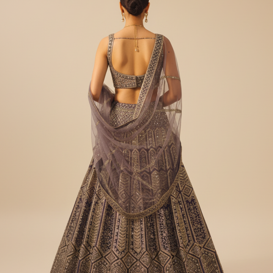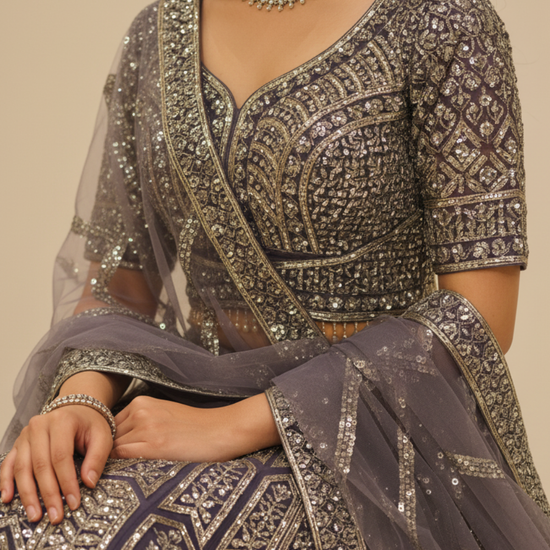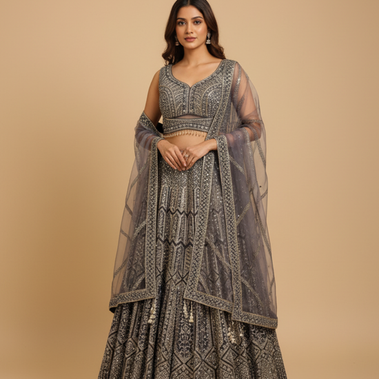 Matelic Grey Net Lehenga Set And Net Dupatta With Readymade Blouse – The Panna Shop