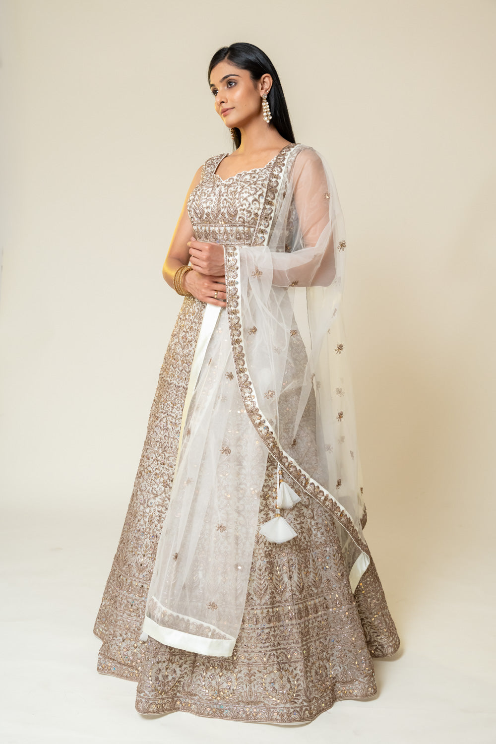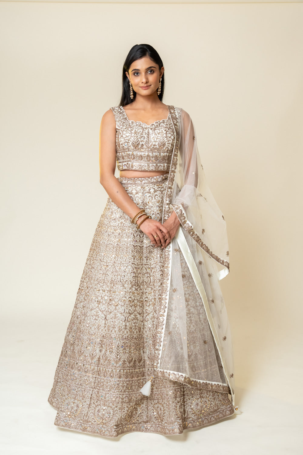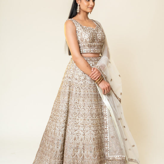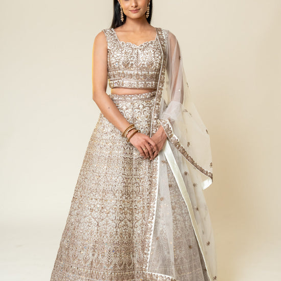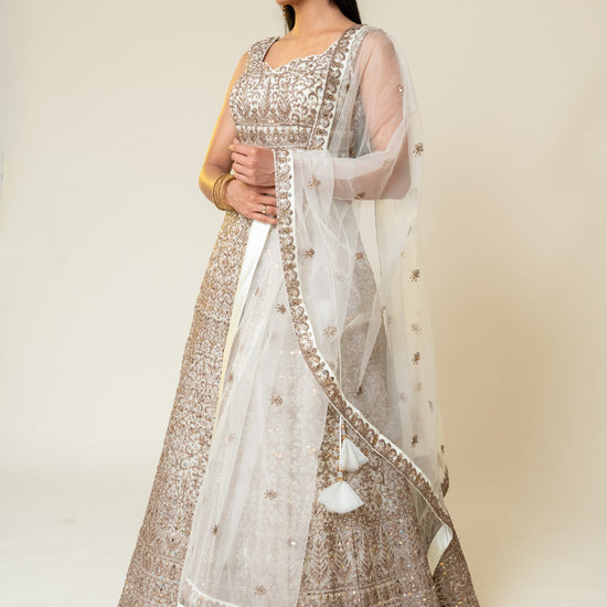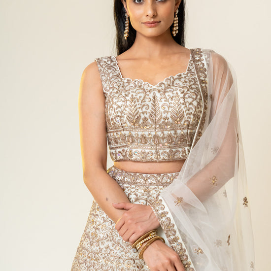 Panna White Net Lehenga Set With Readymade Blouse