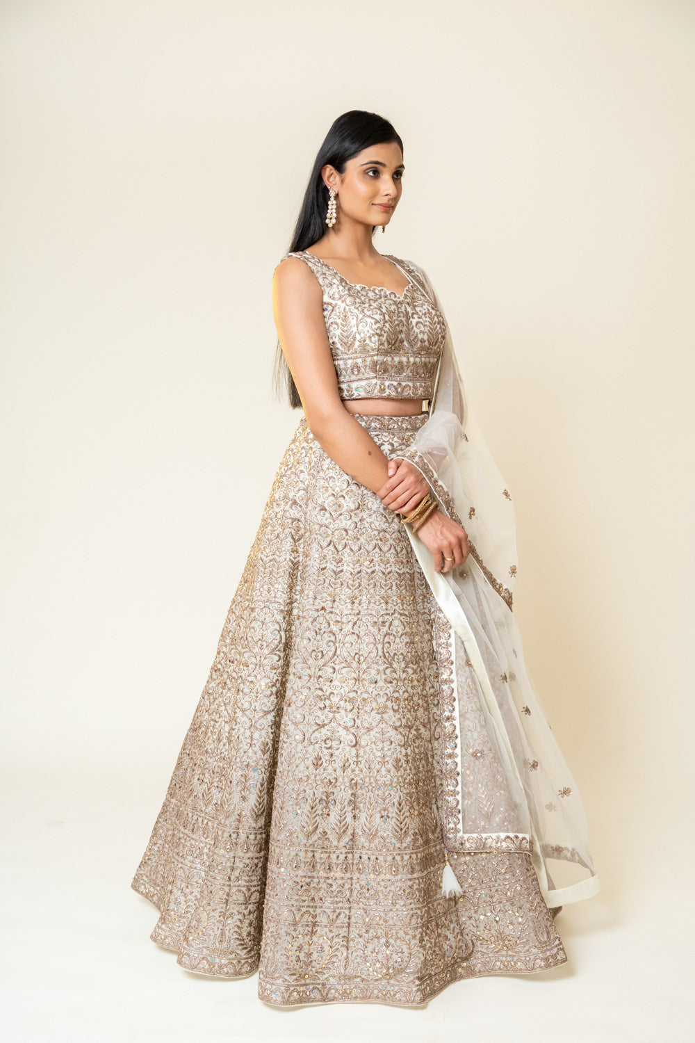 This Net Lehenga is a perfect blend of elegance and sophistication. Made from premium quality net fabric, it has a soft and delicate texture that drapes beautifully. The intricate embroidery and delicate embellishments add a touch of glamour and make it perfect for any formal occasion.