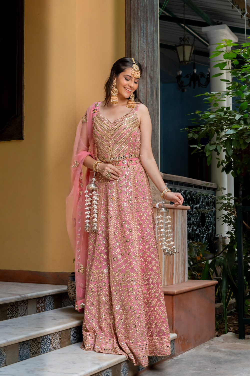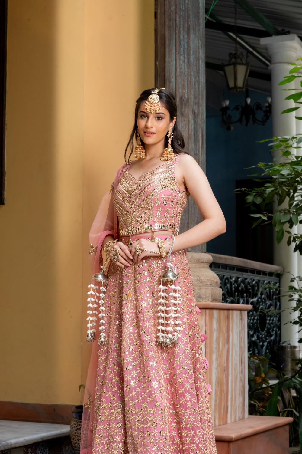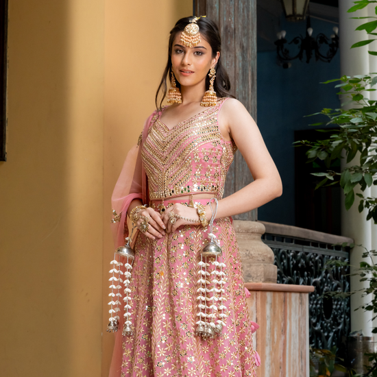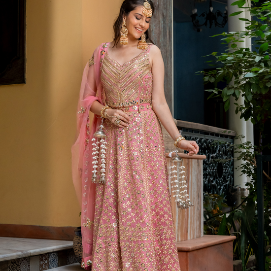 Featuring Mirror & Zari, this Georgette lehenga is designed for Party Wear. Its Heavy finish ensures ease and grace. Keep it pristine with Dry Wash / Dry Clean.