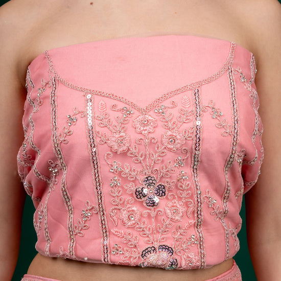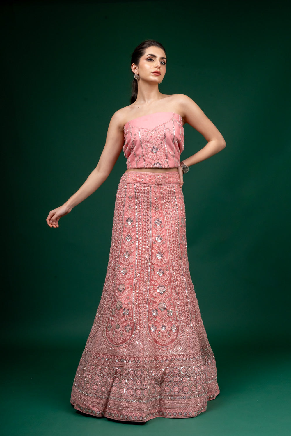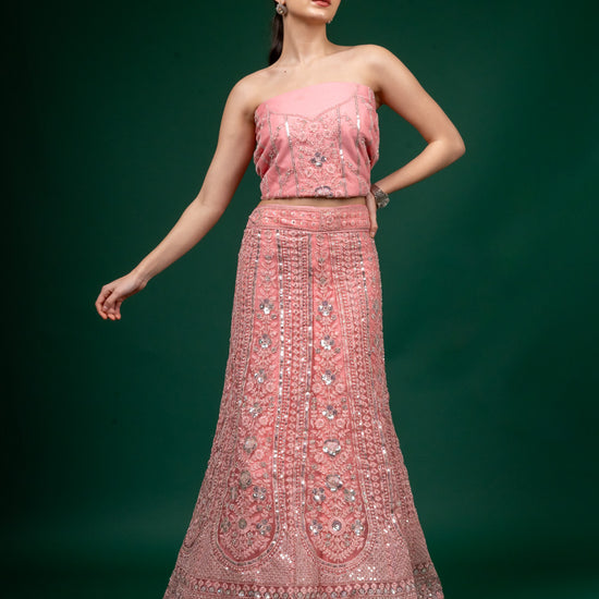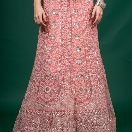 Panna Peach Net Lehenga Set And Net Dupatta With Unstitched Blouse