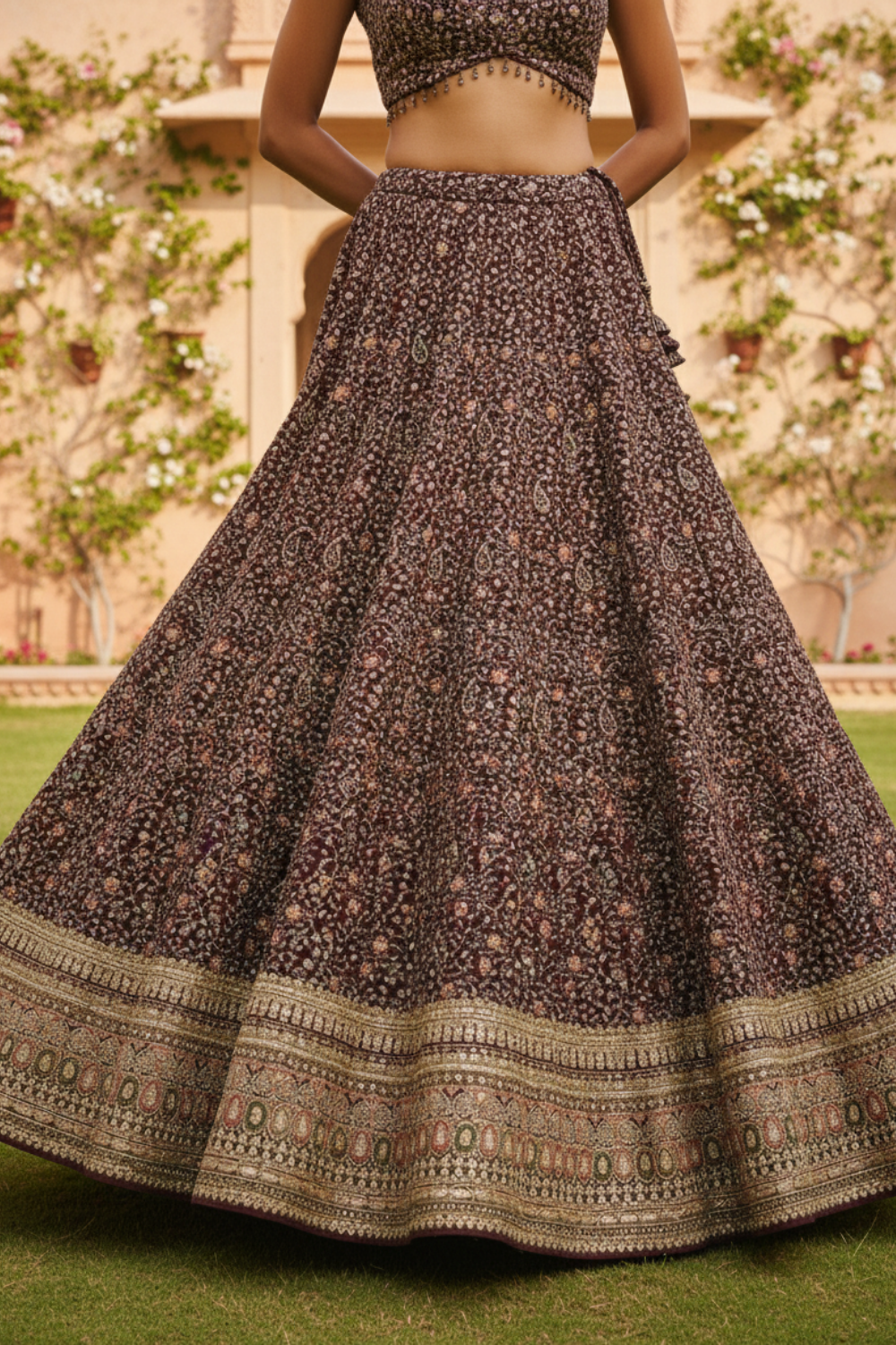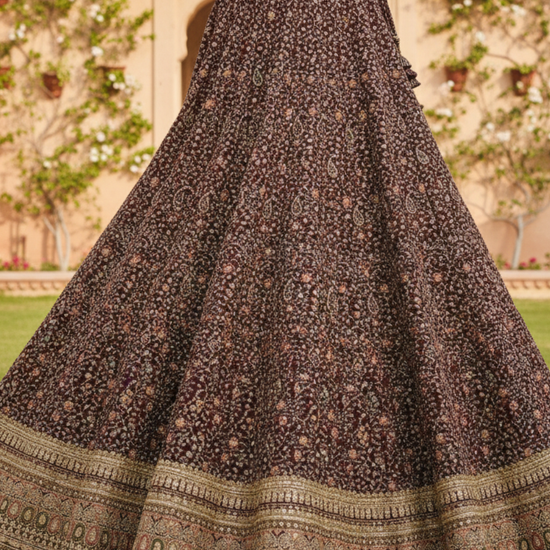 Crafted from Georgette, this lehenga with Sequence work, Thread work, Stone work, Floral printted is ideal for Party Wear. Its Lightweight feel ensures both comfort and style. Dry Wash / Dry Clean recommended.