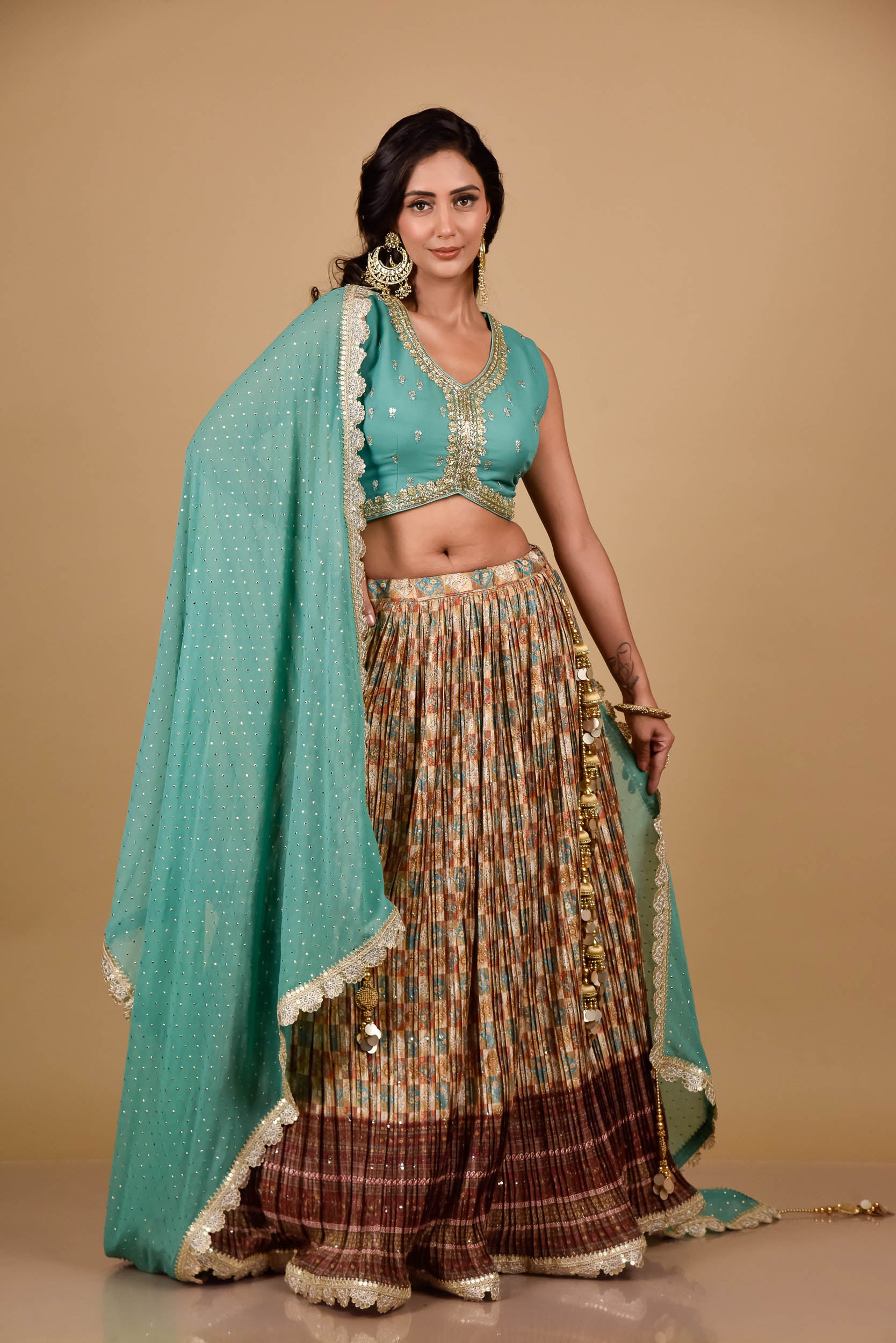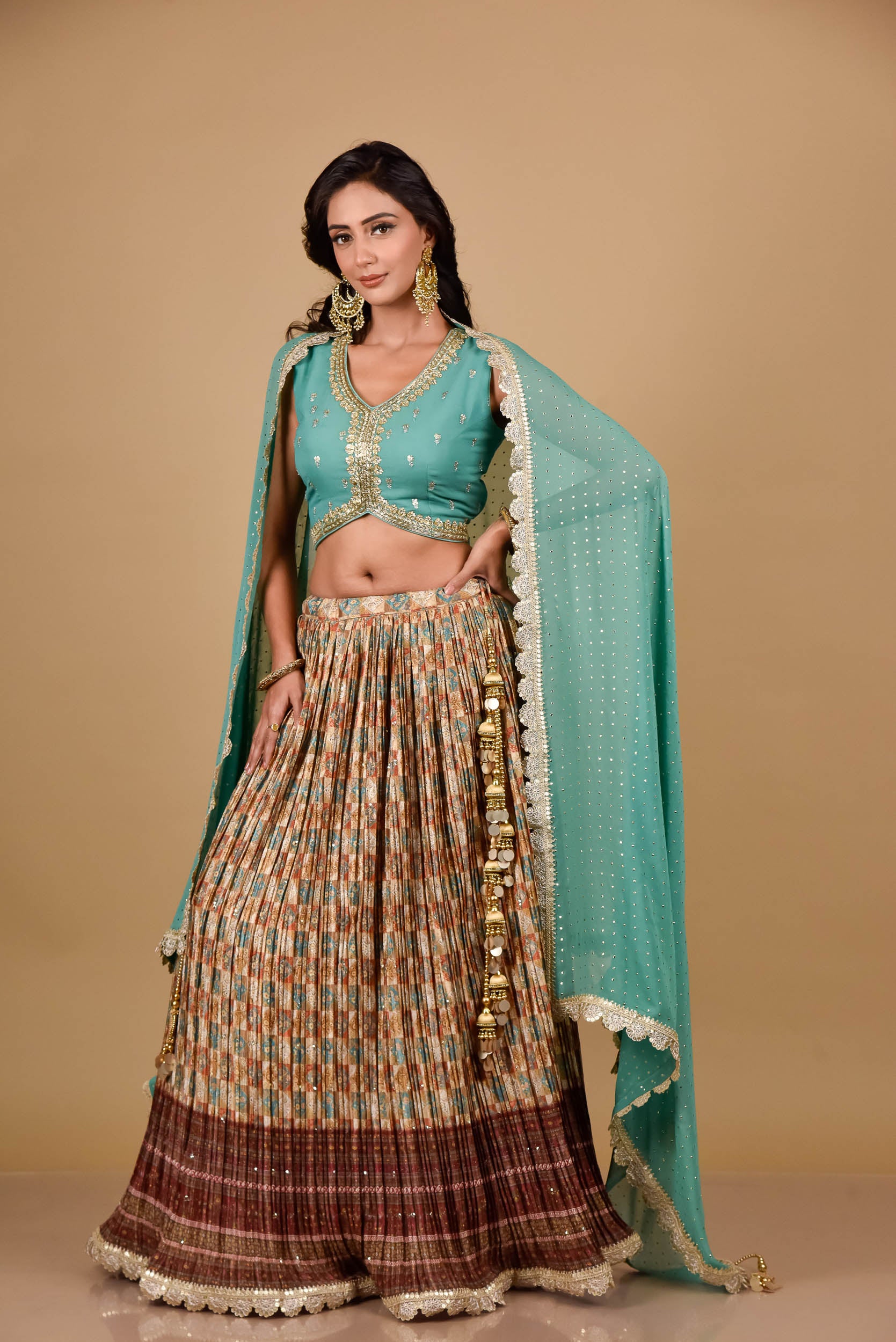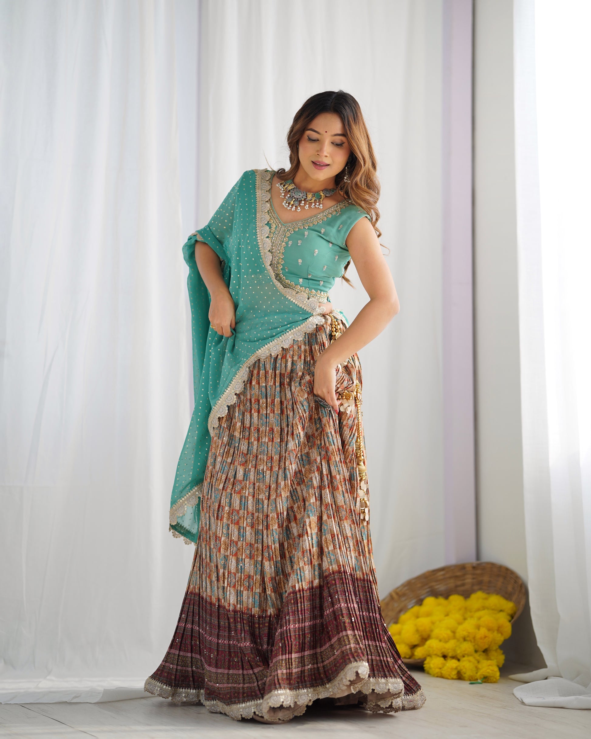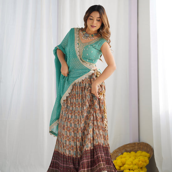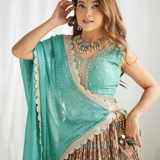 This Georgette Lehenga is perfect for those who want to feel elegant and stylish. Made from premium quality georgette fabric, it drapes beautifully and feels soft against the skin. It features intricate embroidery and delicate beadwork, which adds a touch of glamour and sophistication to the overall look.