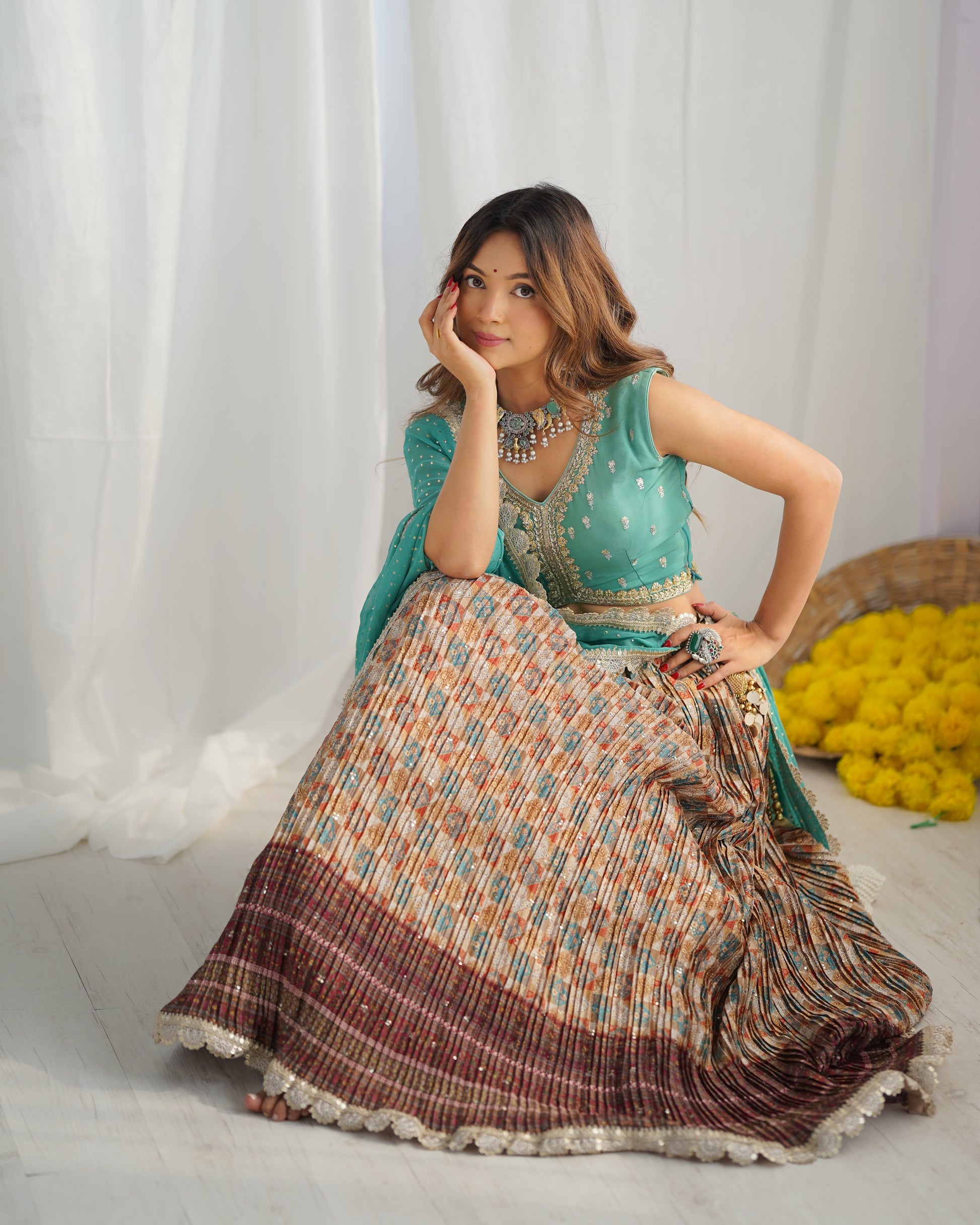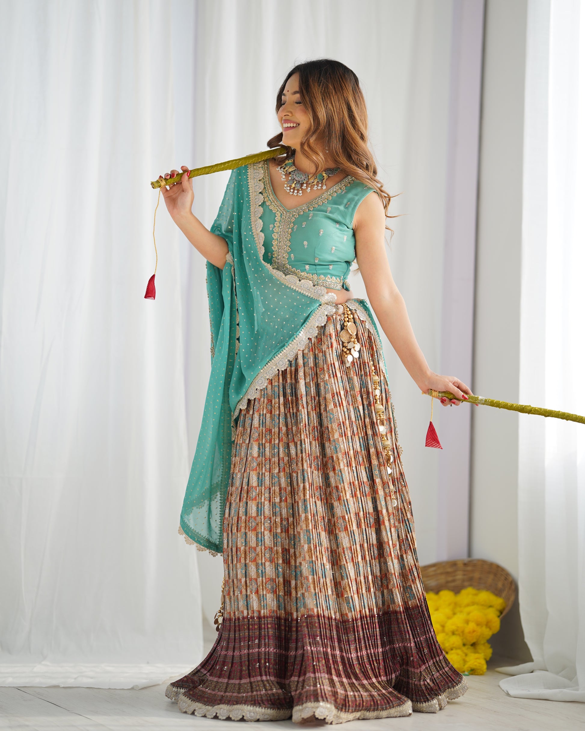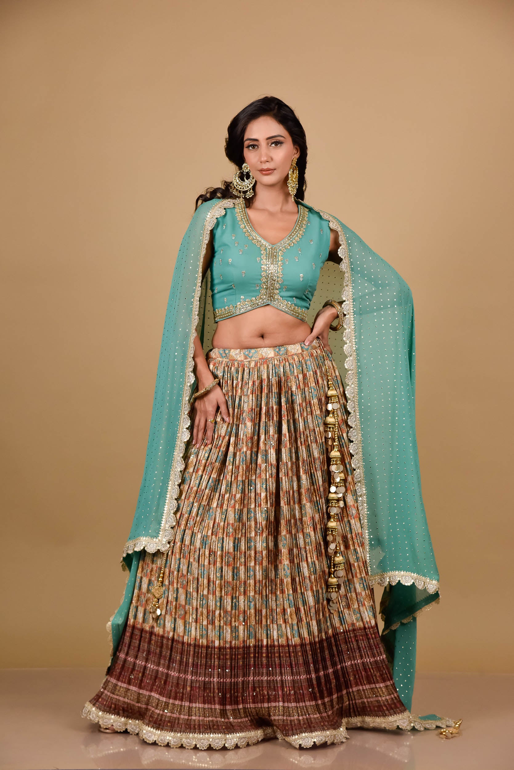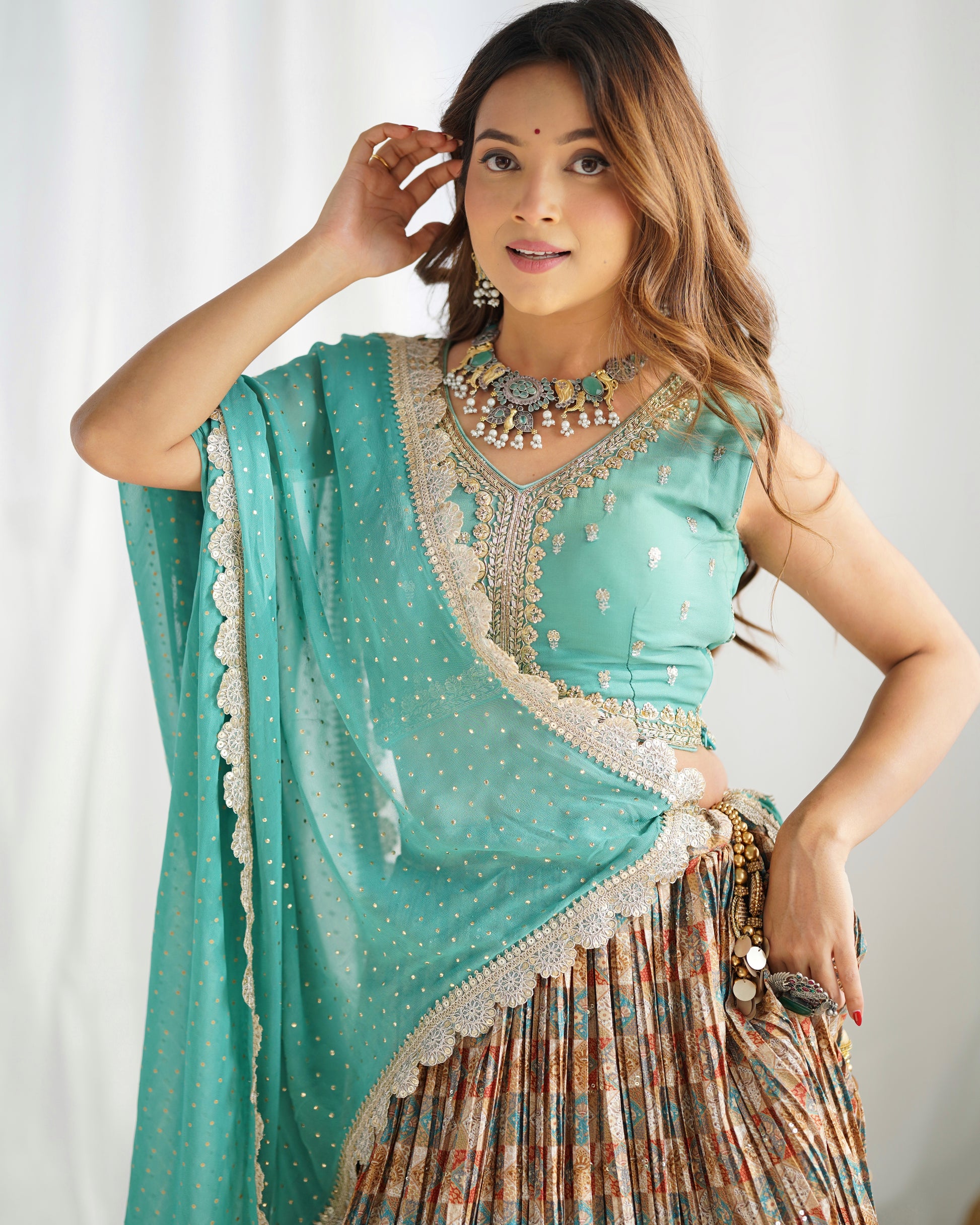 This Georgette Lehenga is perfect for those who want to feel elegant and stylish. Made from premium quality georgette fabric, it drapes beautifully and feels soft against the skin. It features intricate embroidery and delicate beadwork, which adds a touch of glamour and sophistication to the overall look.