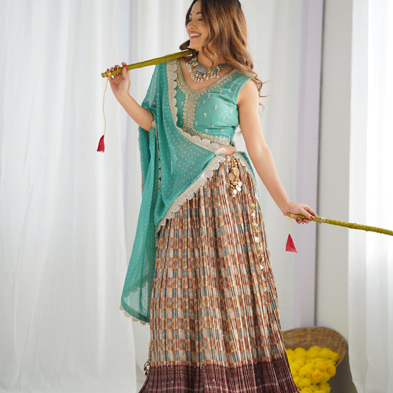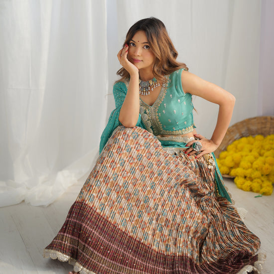 Panna Tussar Maroon Georgette Lehenga Set With Readymade Blouse (Ft:-Arti Chauhan)