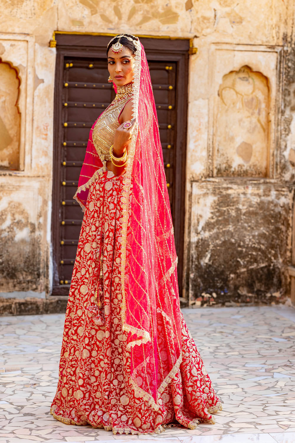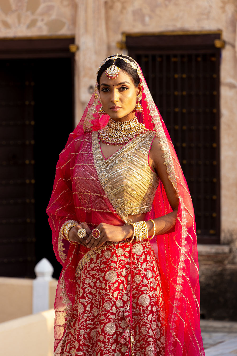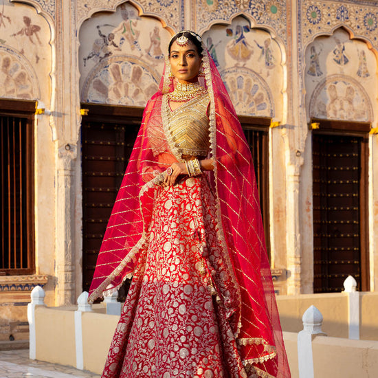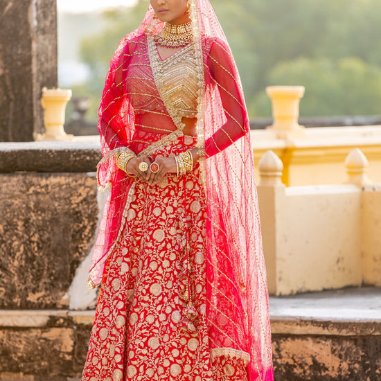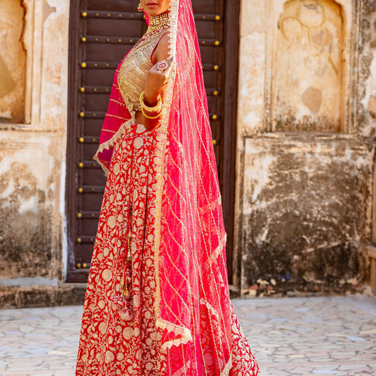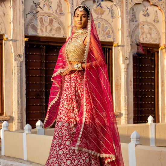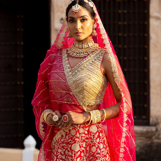 Panna Red Georgette Lehenga Set With Readymade Blouse
