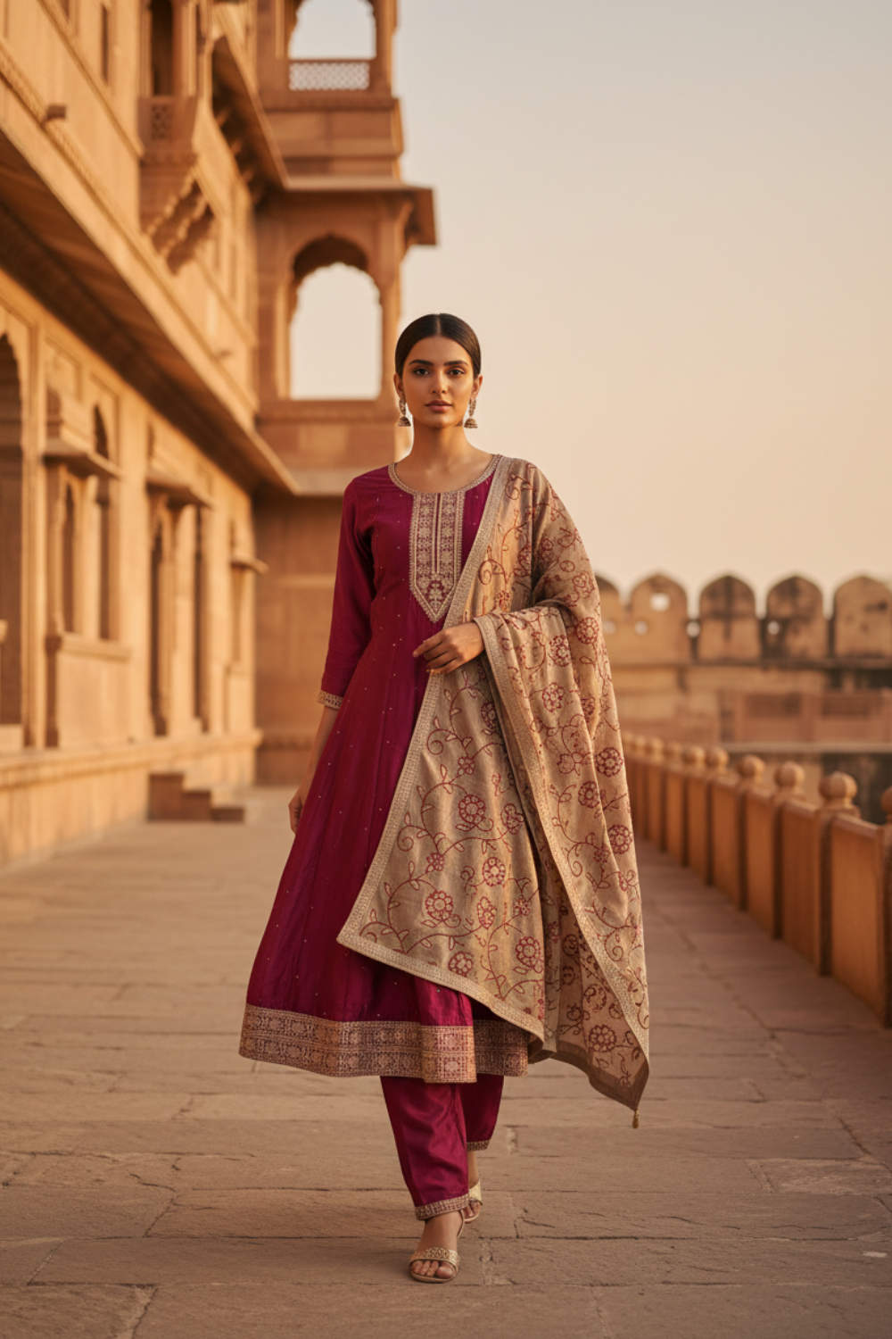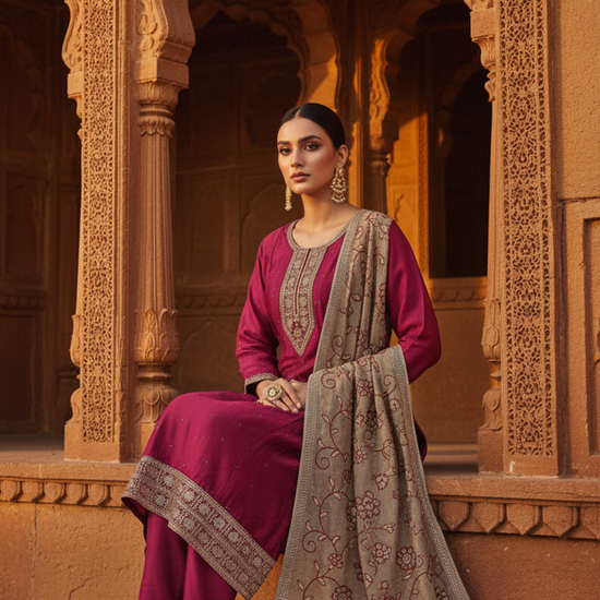 Gajari Cotton Readymade Suit And Pant With Cotton Dupatta – The Panna Shop