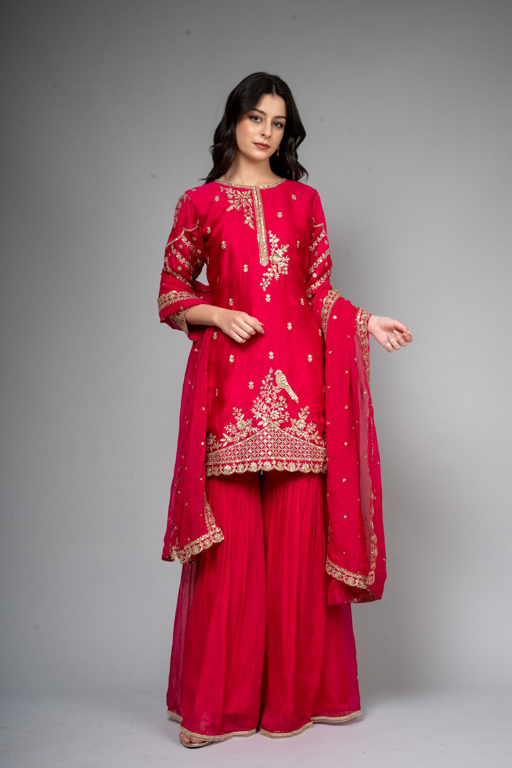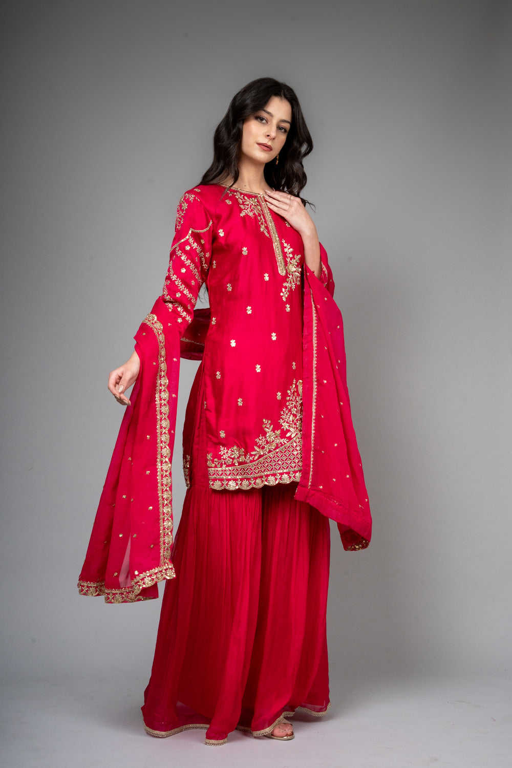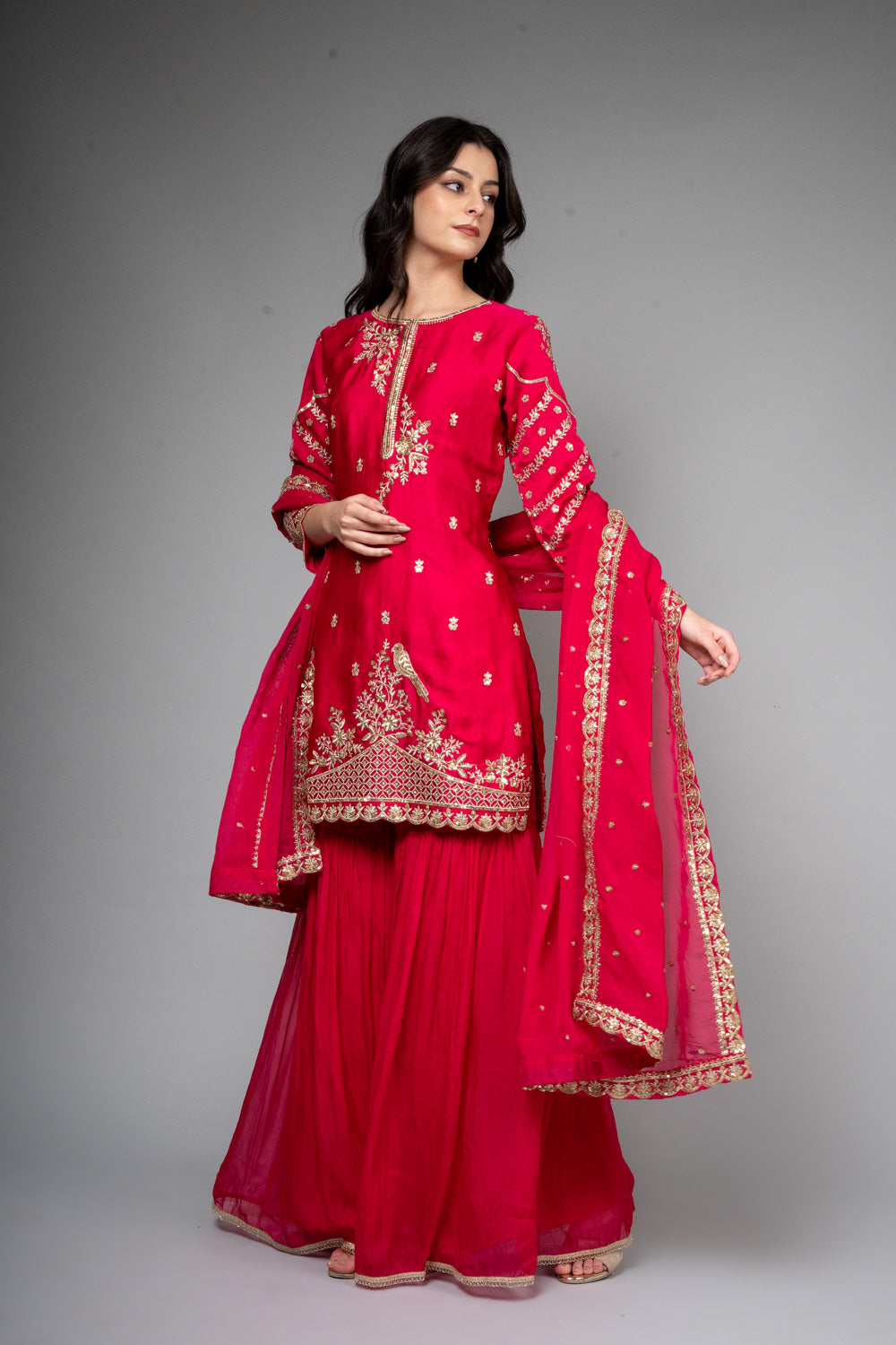 Rani Satin Readymade Sharara Set With Organza Dupatta – The Panna Shop