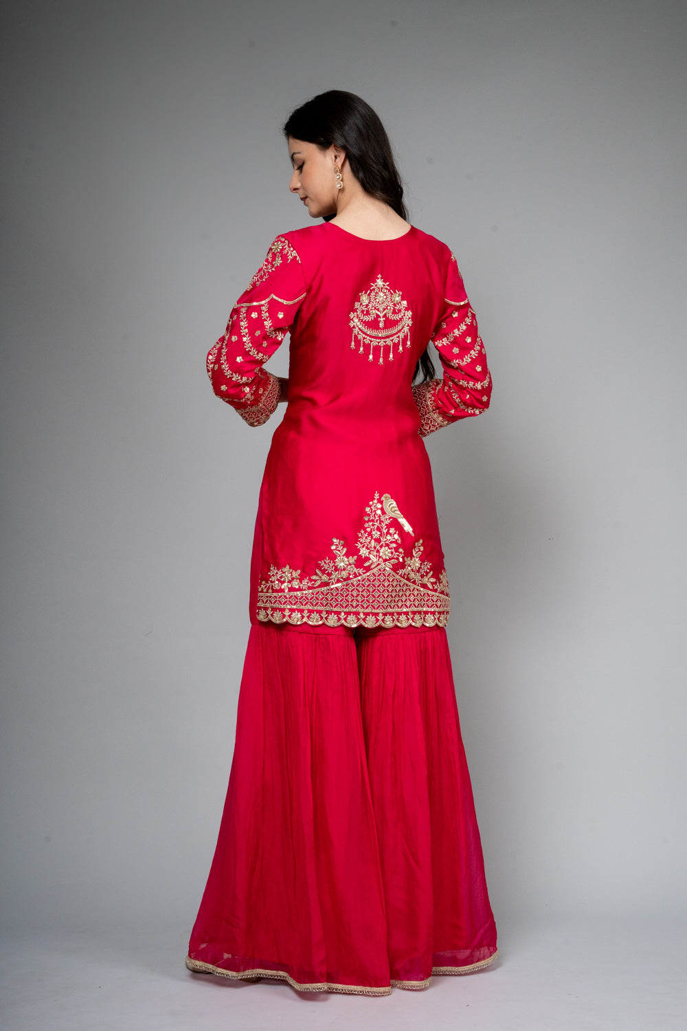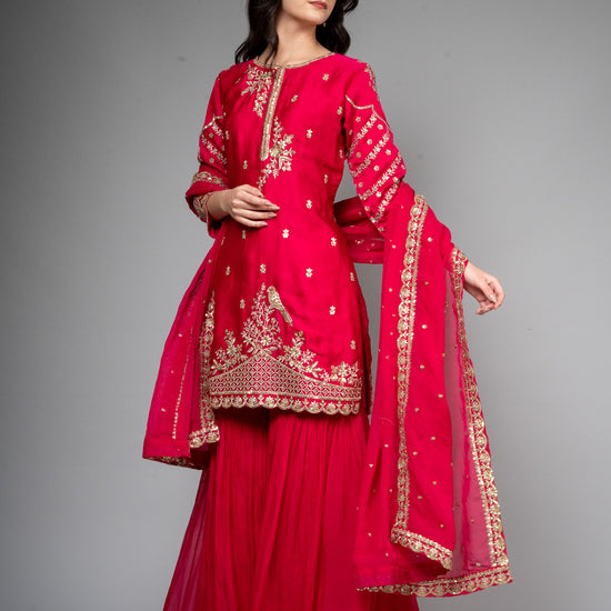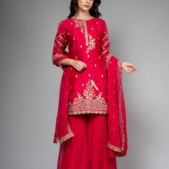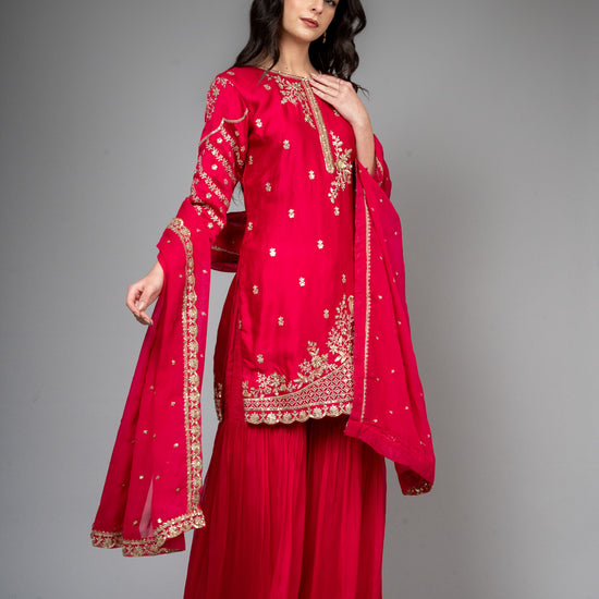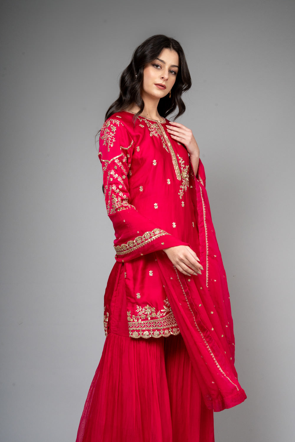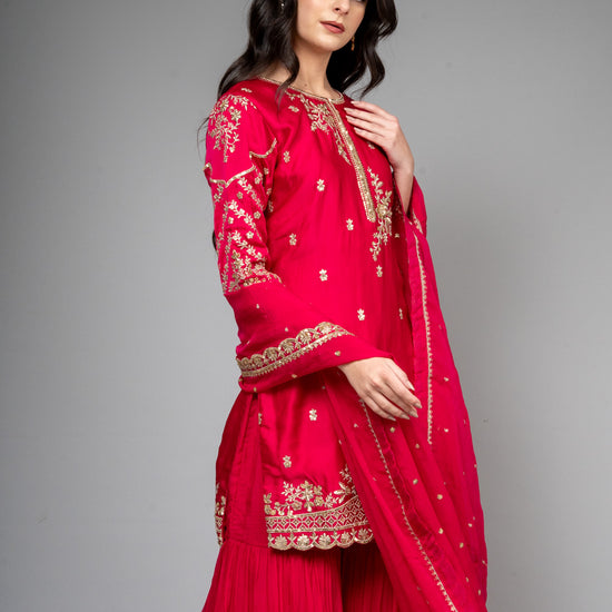 Rani Satin Readymade Sharara Set With Organza Dupatta – The Panna Shop