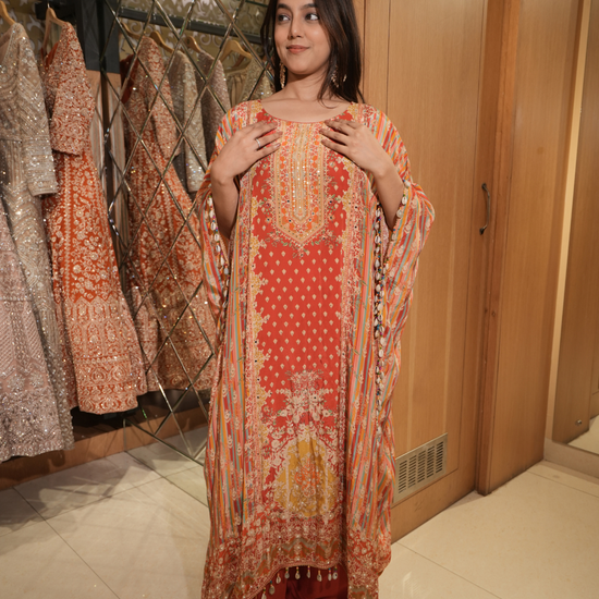 Panna Rust Gotta Patti, Mirror, Sequence & Digital Printed Crepe Readymade Suit With Pant (Ft:-Neha Bijlani & Muskan Sharma)