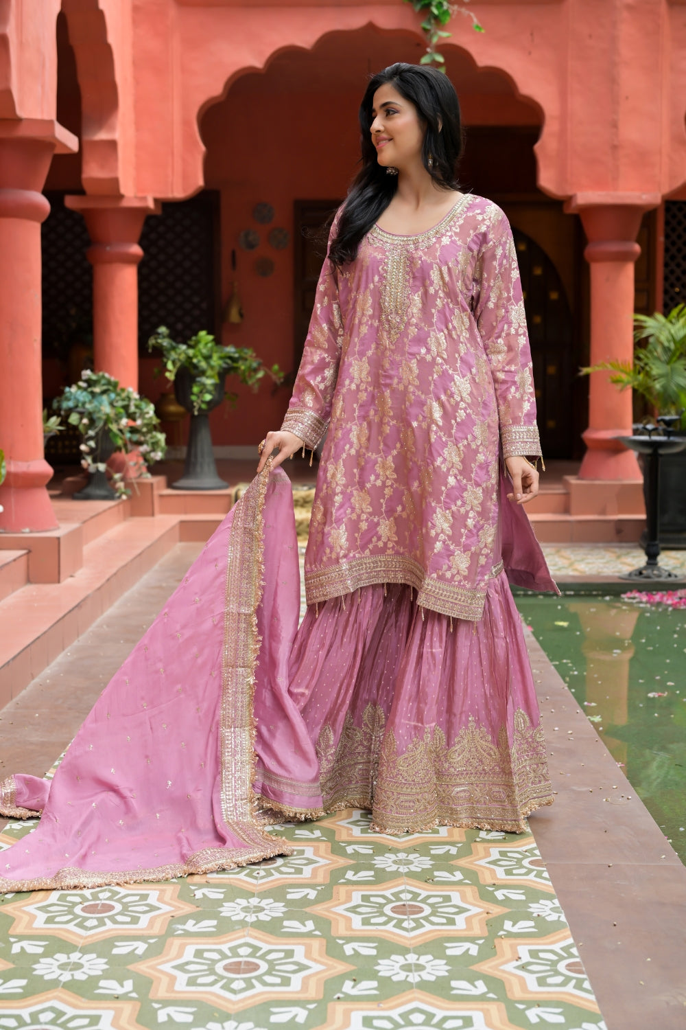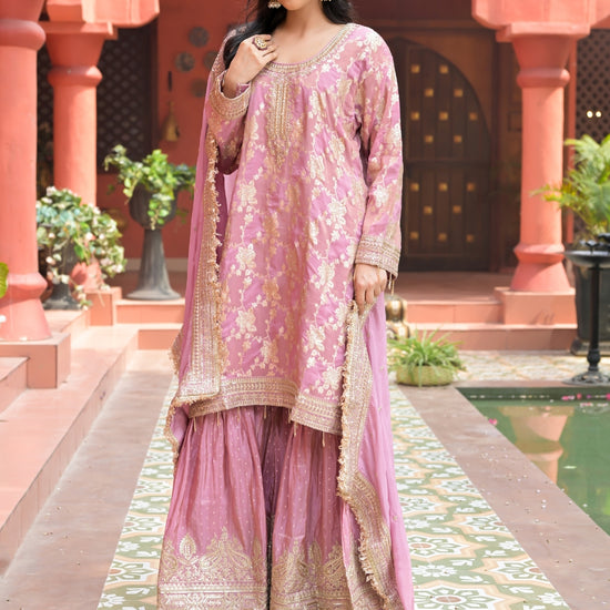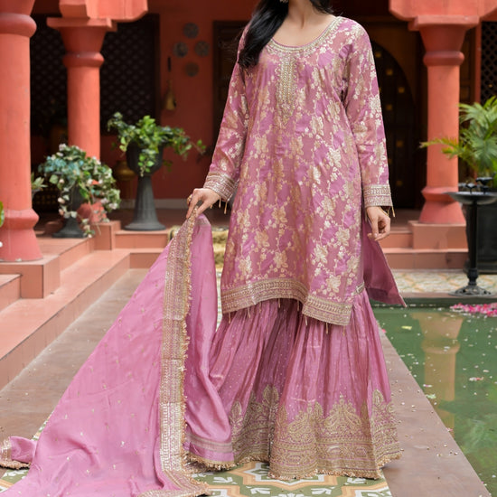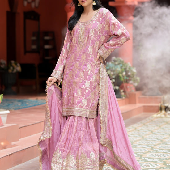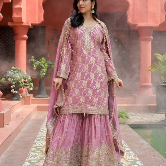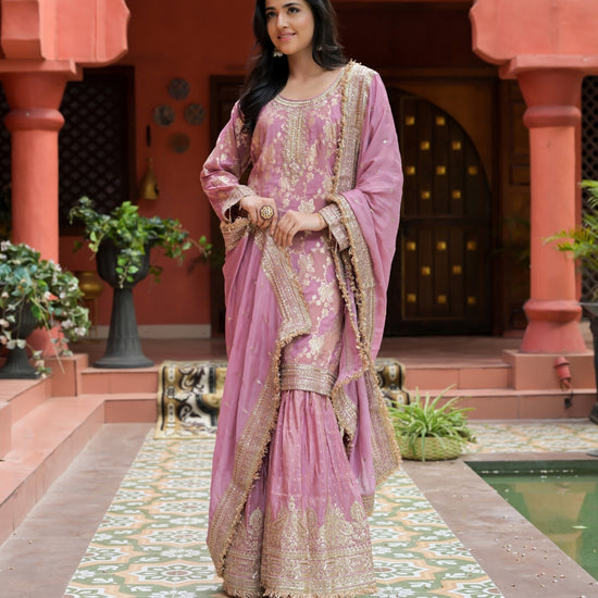 Panna Gajari Tissue Readymade Sharara Set With Tissue Dupatta