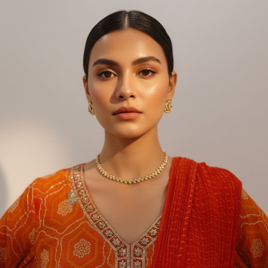Work : Bandhini Print, Mirror Sheet, Sequence & Zari Threadwork