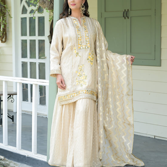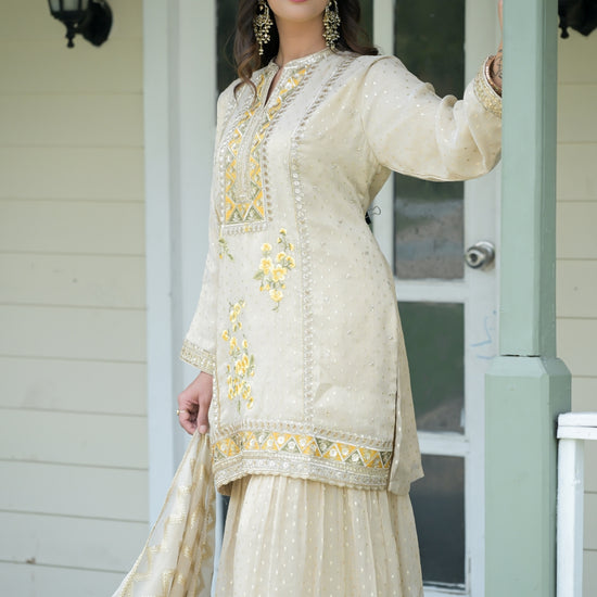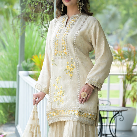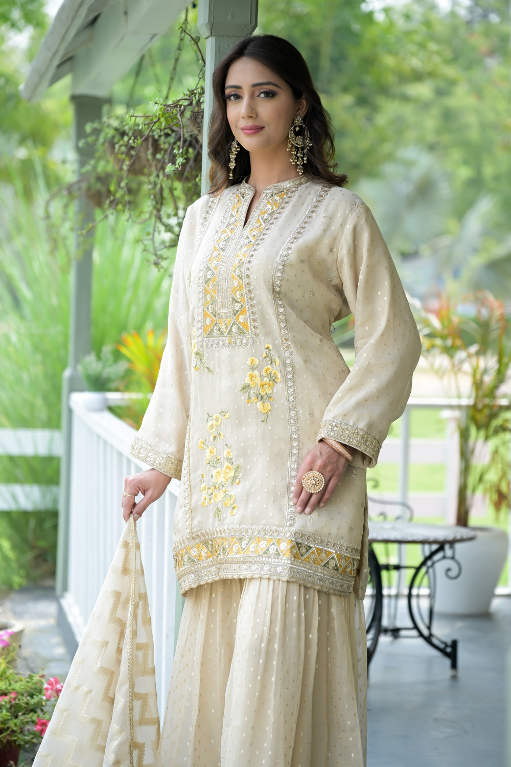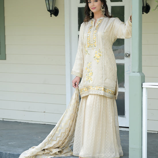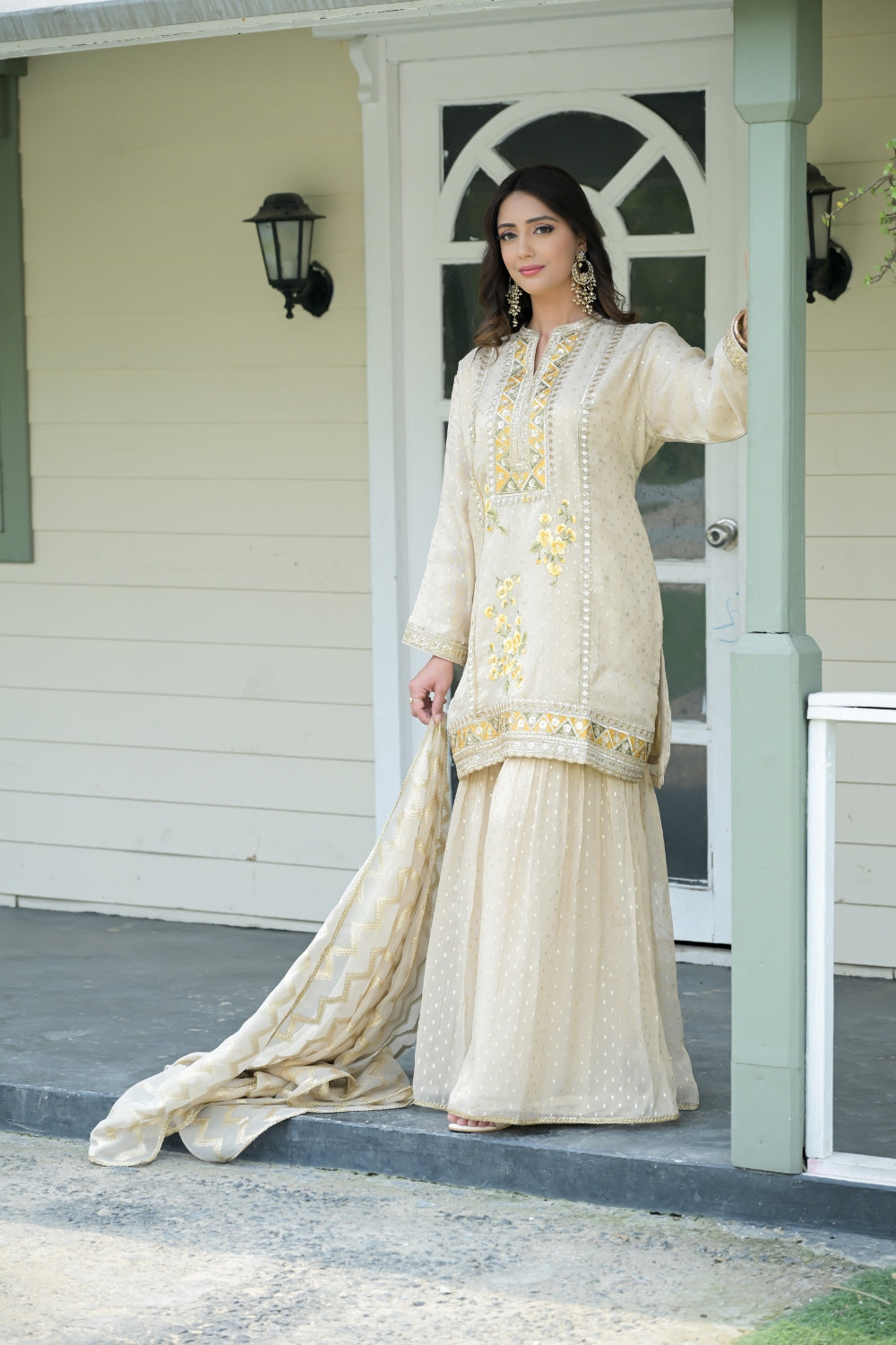 Panna Tussar Tissue Readymade Sharara Set With Tissue Dupatta