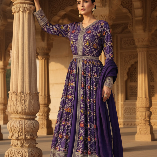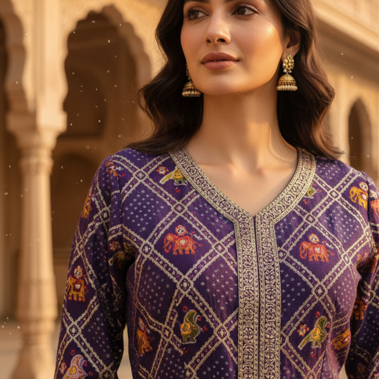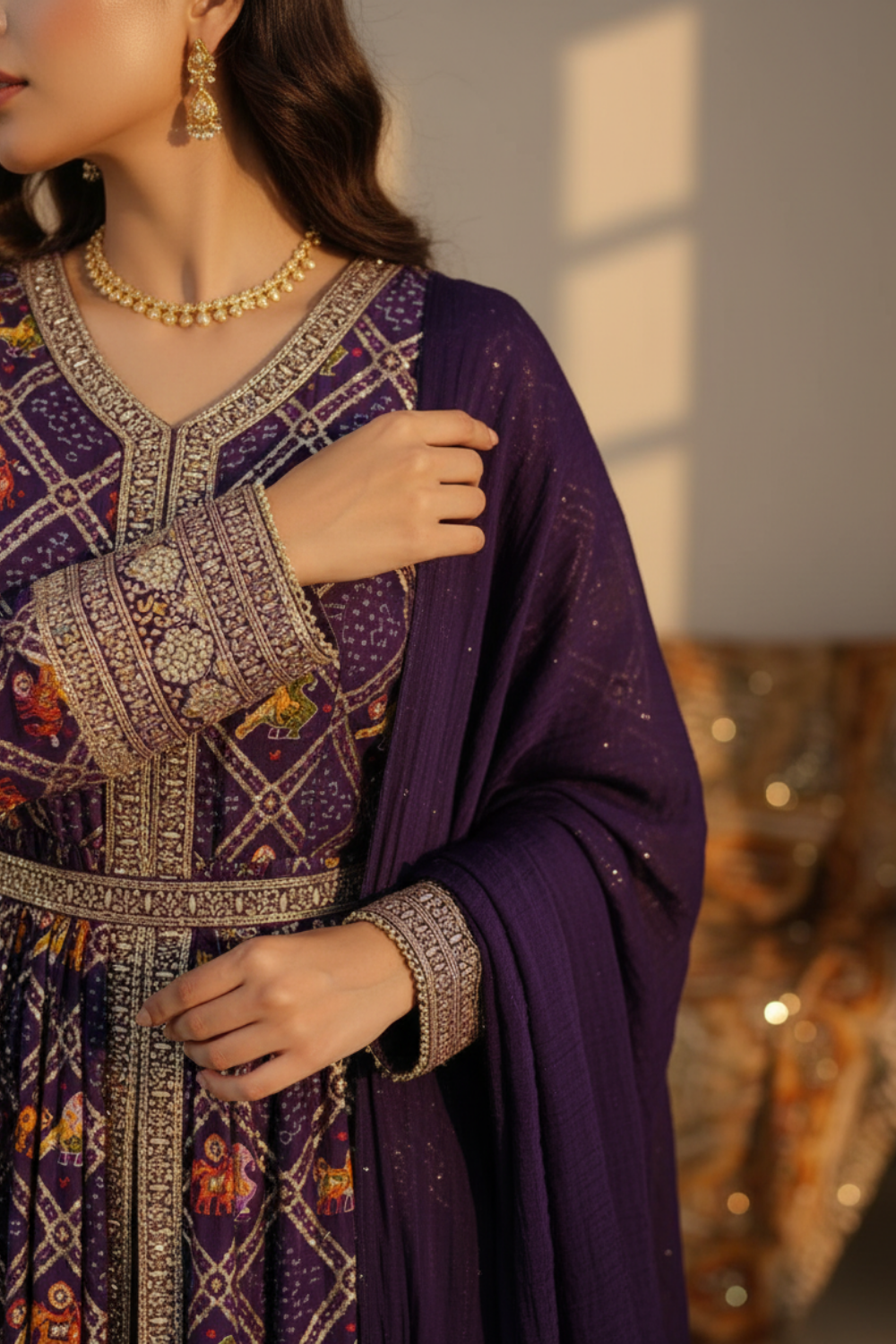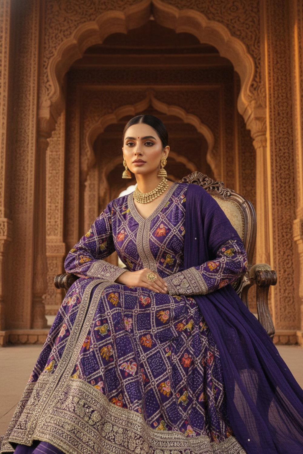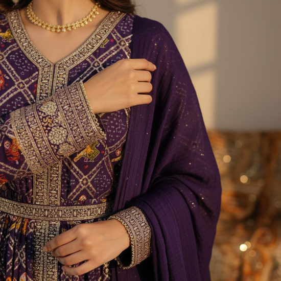 Draped in Royalty Purple Tissue Readymade Suit Set And Pant With Chino – The Panna Shop