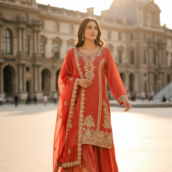 Panna Nature’s own couture Rust Chinon Readymade Suit And Pant With Chinon Dupatta