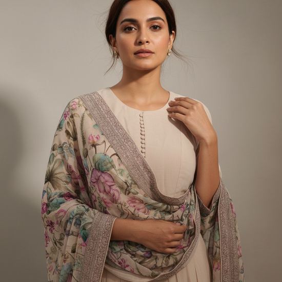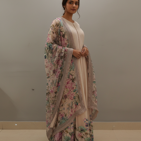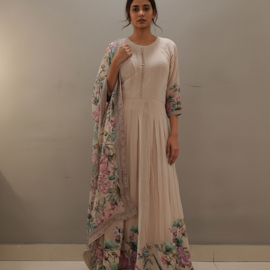 Panna Tussar Georgette Floor Length Readymade Suit With Organza Dupatta
